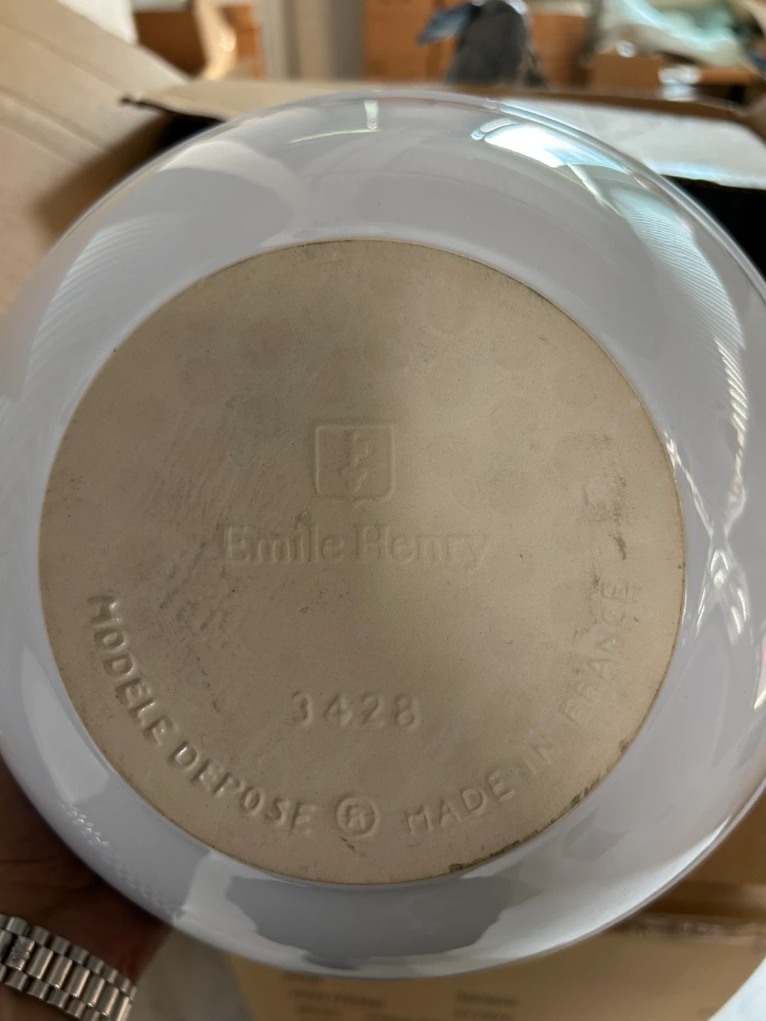 Selling a 3 pc set large white ceramic bowl from Emile Henry! It's in great condition and ready for a new home. This bowl is perfect for serving salads, pasta, or even as a decorative piece. It features a classic design and durable construction, typical of Emile Henry products