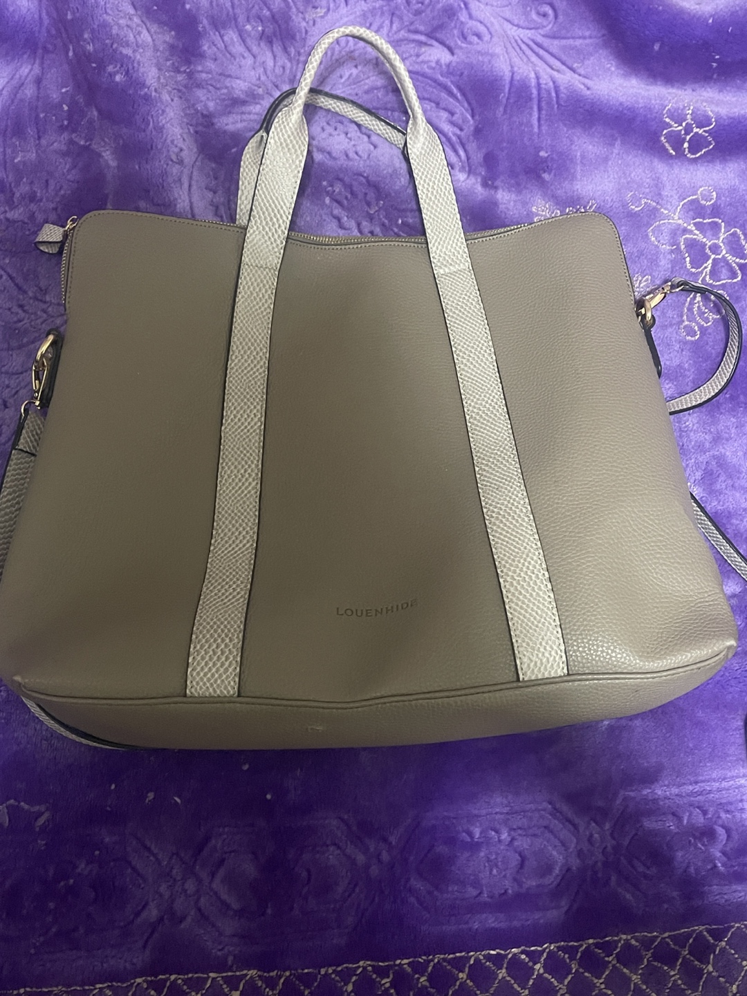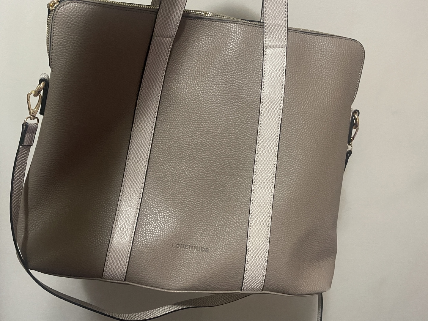 Selling a Louenhide tote bag in a lovely beige colour. It's in great condition and perfect for everyday use or as a work bag. The interior has a striped lining. It features both handles and a shoulder strap for versatile carrying options
