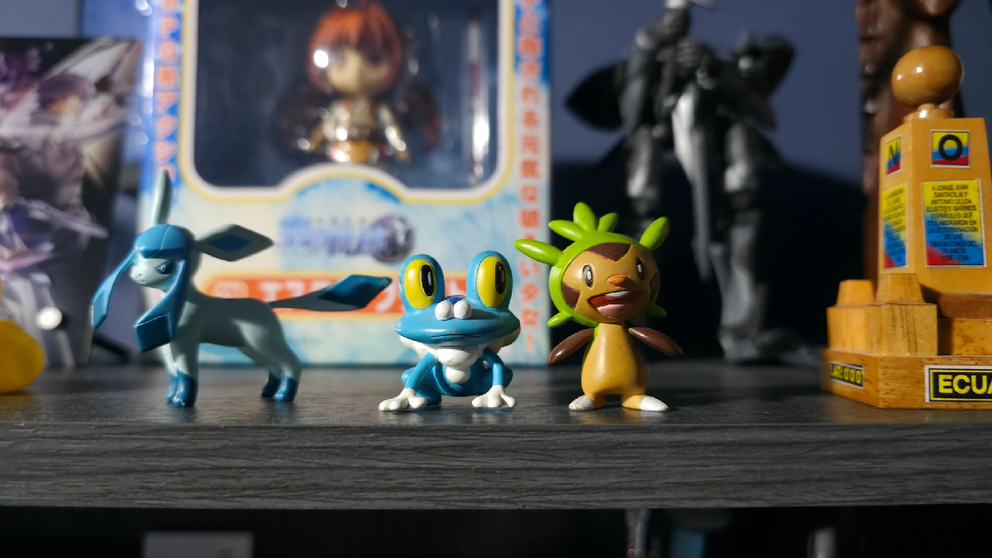 159I am selling a set of three Pokemon figures. Glacion, Froakie, and Chespin.