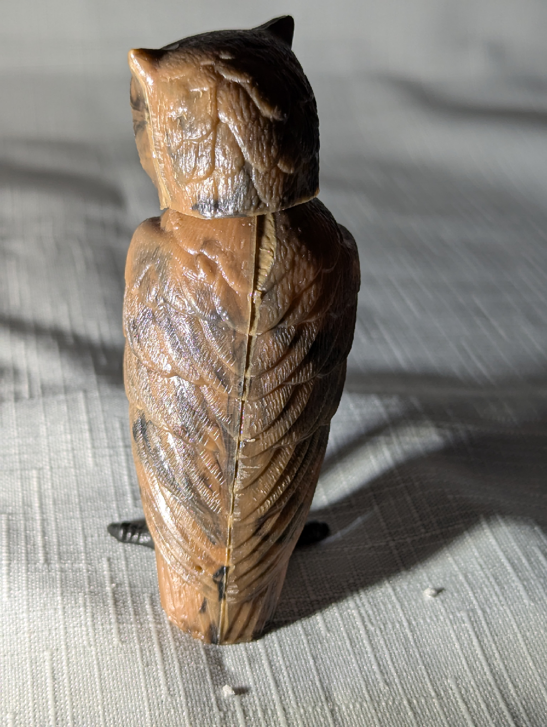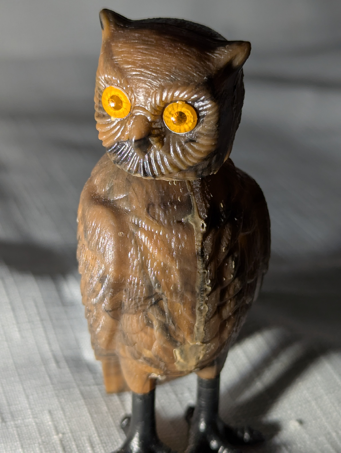 Here's a cute vintage plastic owl Bobble Head ! It's brown with black accents and has bright yellow eyes. A fun little piece for any collector. 3.5 inches tall.