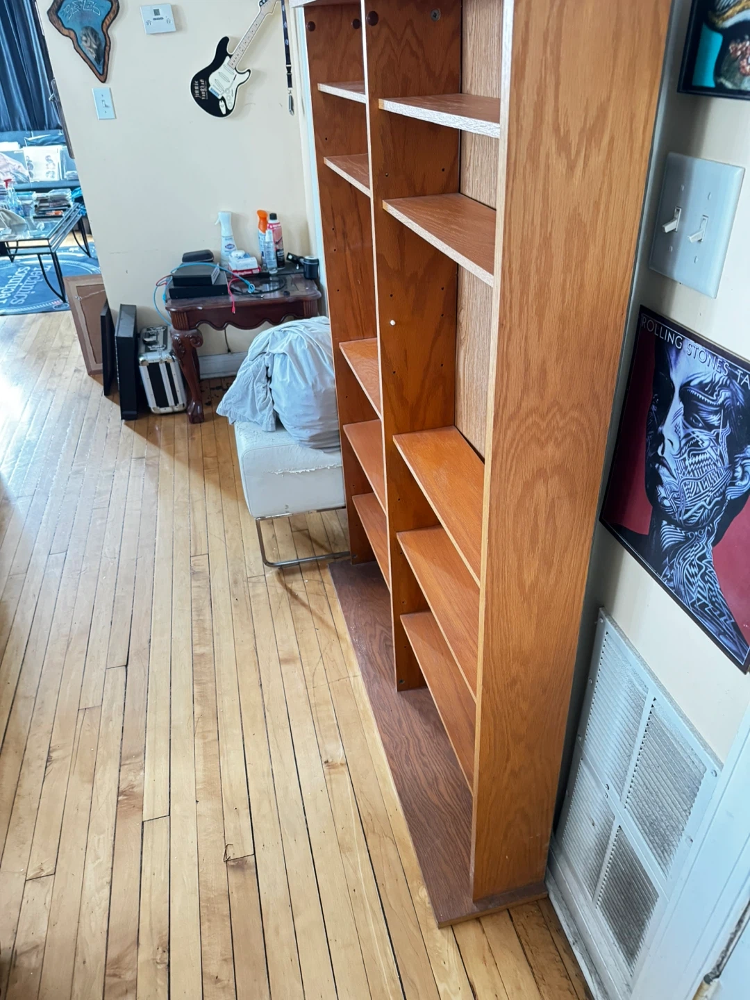 Buy & SellWooden BookcaseWooden Bookcase$10Here's a wooden bookcase! It has multiple shelves and is in good conditionDimensions45”,7”,59”WHERE TO MEETCheck LocationView MapSELLERRolandoHermosa353 reviews5 chats·11 favorites·243 viewsSEND CHAT TO SELLERHi Rolando! I’m interested in your listing.Hi Rolando! I’m interested in your listing.Get the Karrot app to chatSign In to chat