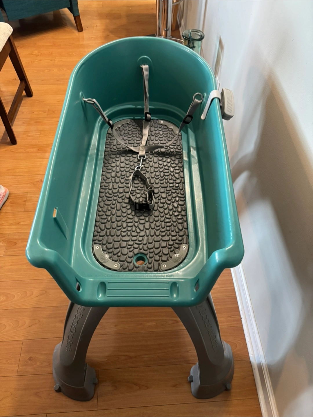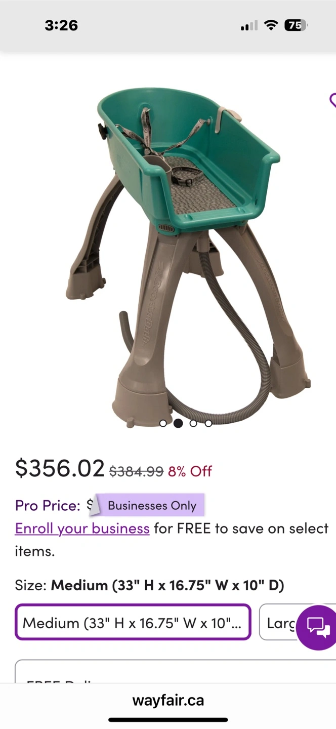 Here's a Booster Bath elevated pet bathing tub in great condition! It's a medium size (33" H x 16.75" W x 10" D). This makes bath time easier on your back and keeps your furry friend secure. Originally bought for $356.02…for S/M dogs