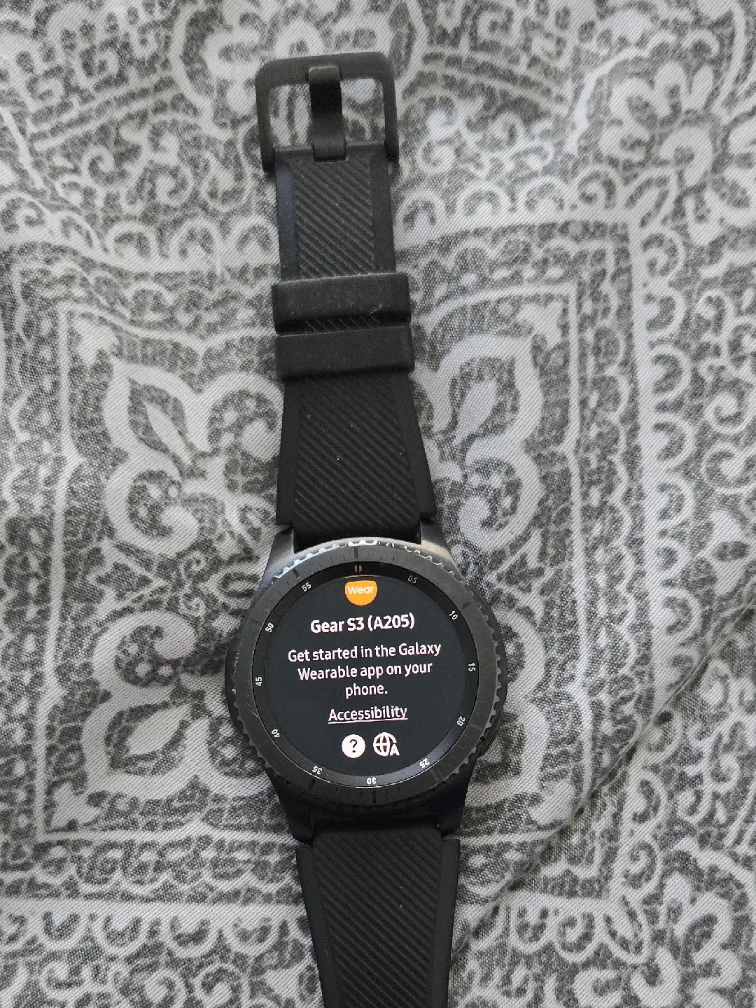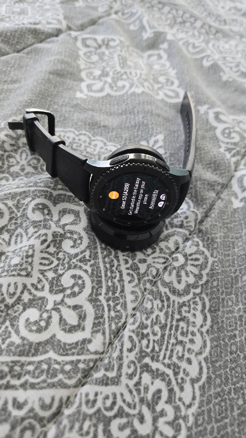 Selling a Samsung Gear S3 (A205) smartwatch. It comes with a wireless charger. Get started in the Galaxy Wearable app on your phone!