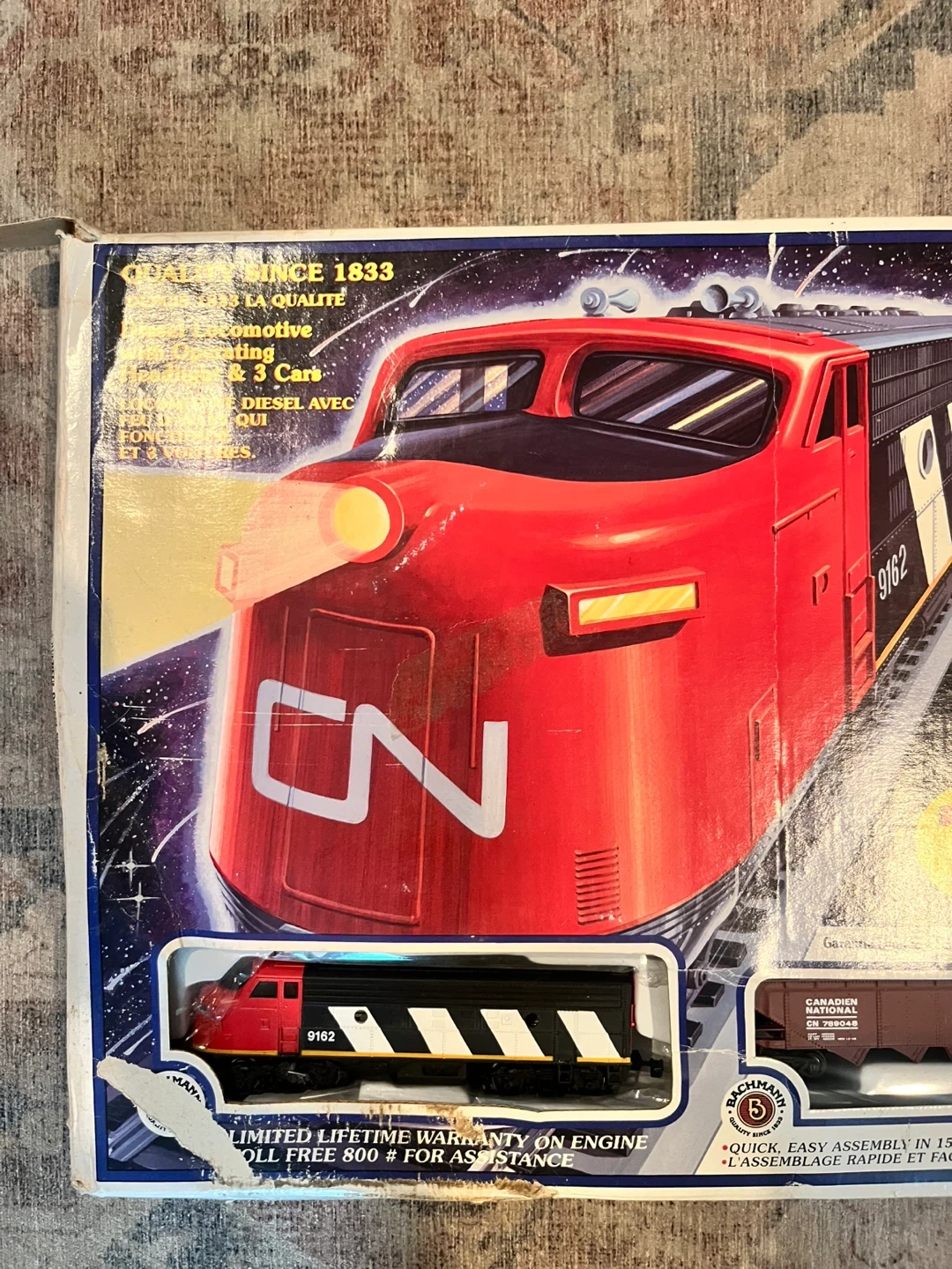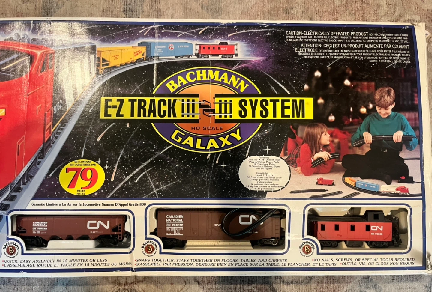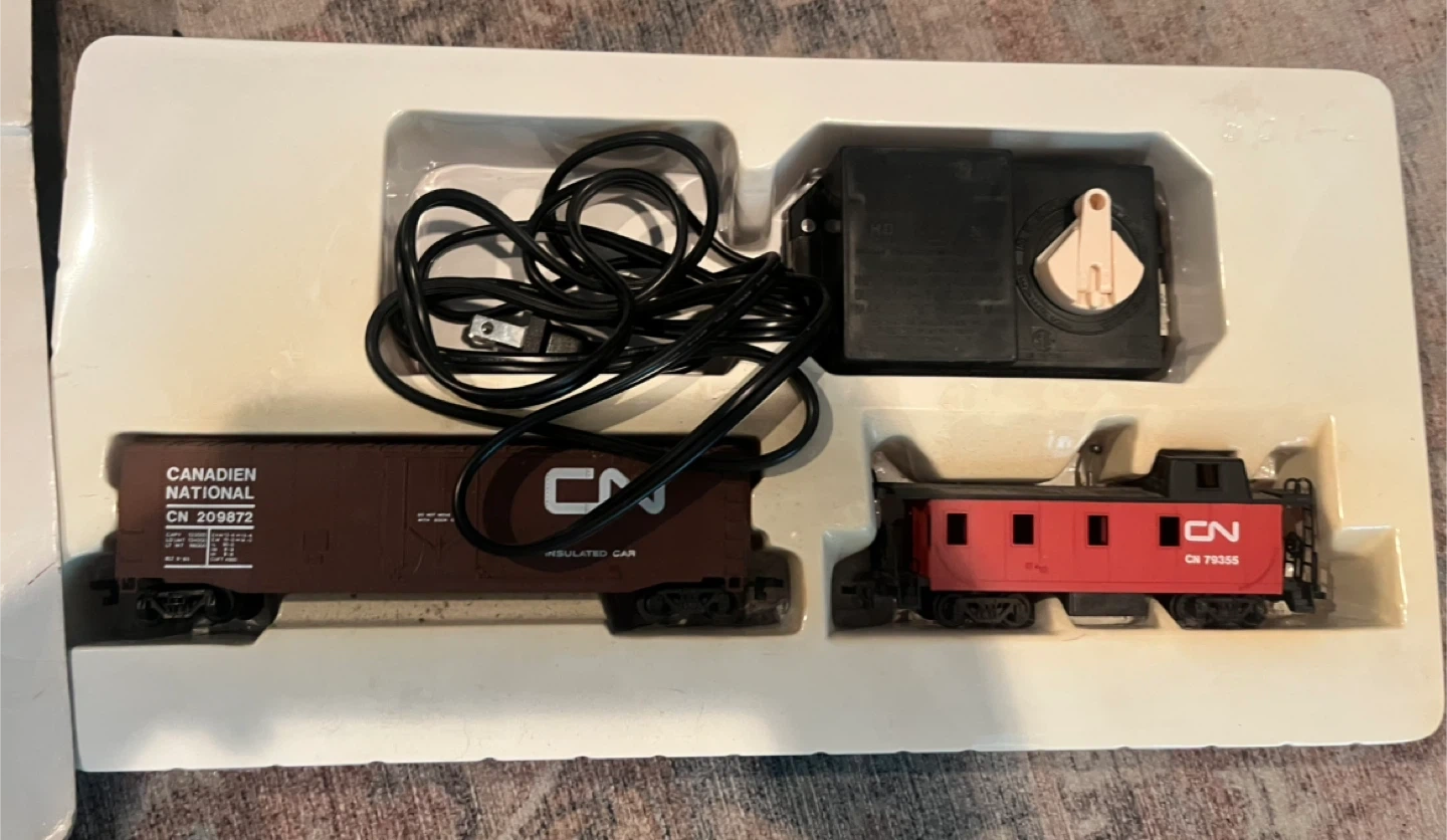 Bachmann Galaxy EZ Track train set. This a very nice collector train. My late uncle gave it to me when I was a kid (over 30 yrs ago) and I’ve never played with it. He was a train collector and had lots running in their train room at all times, very neat. I didn’t know I still had it. It looks new in box, tape in tact and twist ties in place around tracks. I never opened it. 56”x 38” oval track. 24 signs, 24 figures. Operating headlights. 79 pieces. quick and easy assembly. Perfect for train enthusiasts!