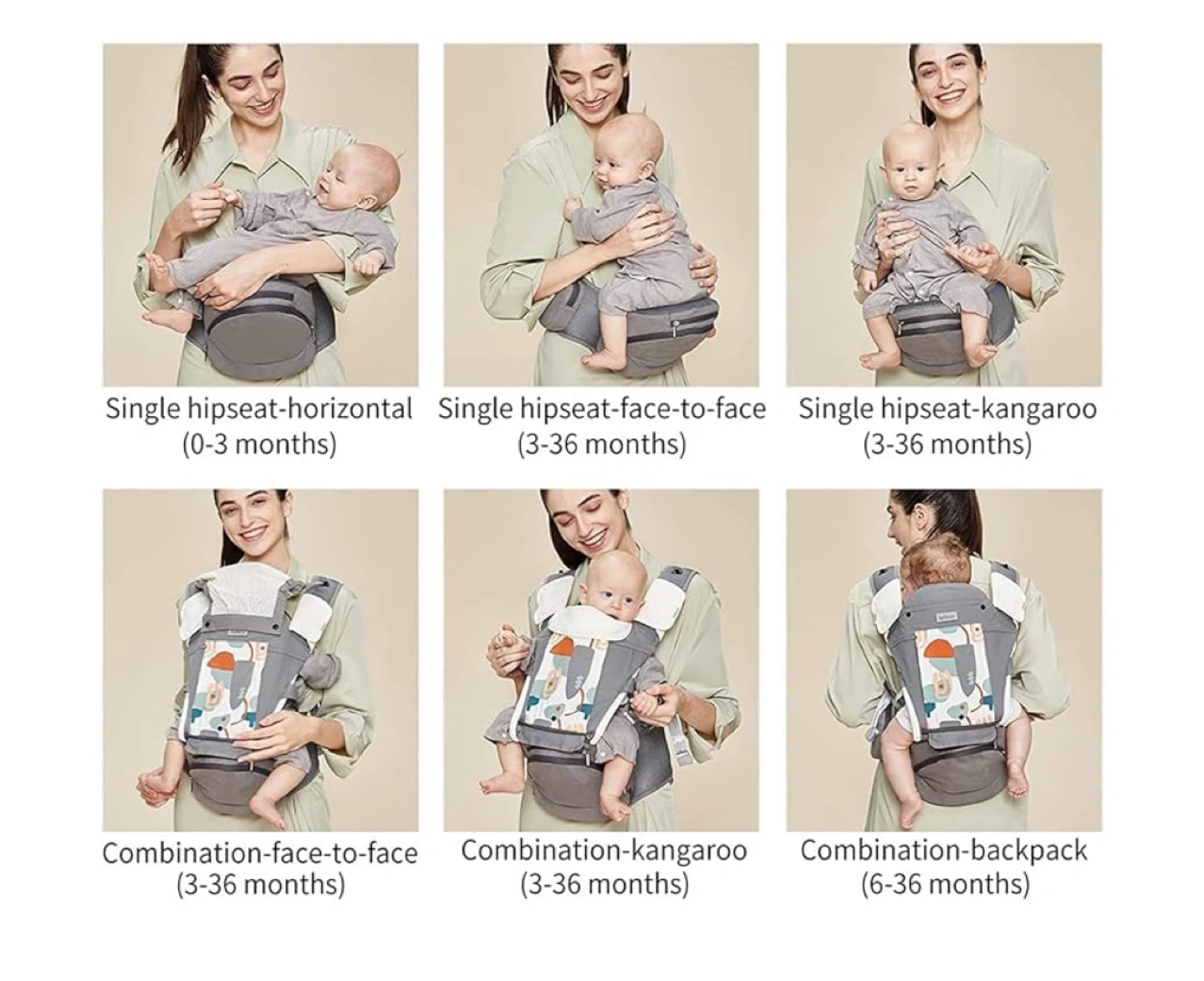 Suitable for babies aged 0-36 months, offering multiple carrying positions like face-to-face, kangaroo, and backpack styles.