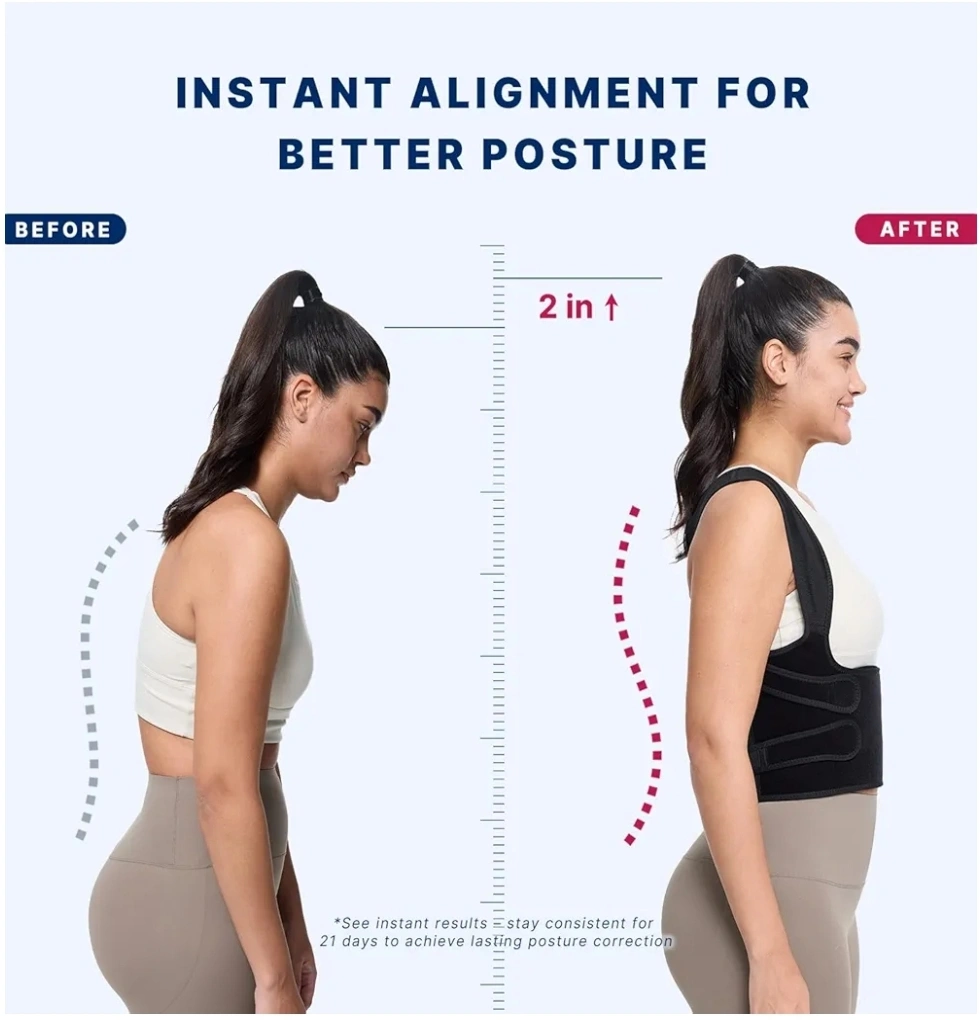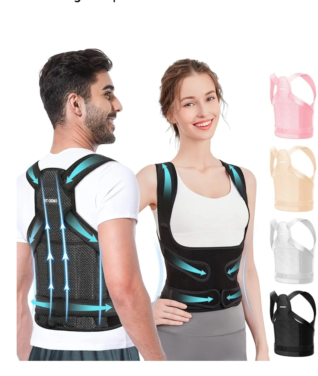 This Fit Geno posture corrector helps with posture transformation, going from slouch to strong, instantly stand tall, confident, and reduce facial sagging. It offers key comforts with comfortable and flexible adjustment for all-day wear. It also provides 3x targeted support with shoulder, back, and elastic support for perfect posture, and 4 back support bars that stabilize your spine, ease tension, and keep you upright