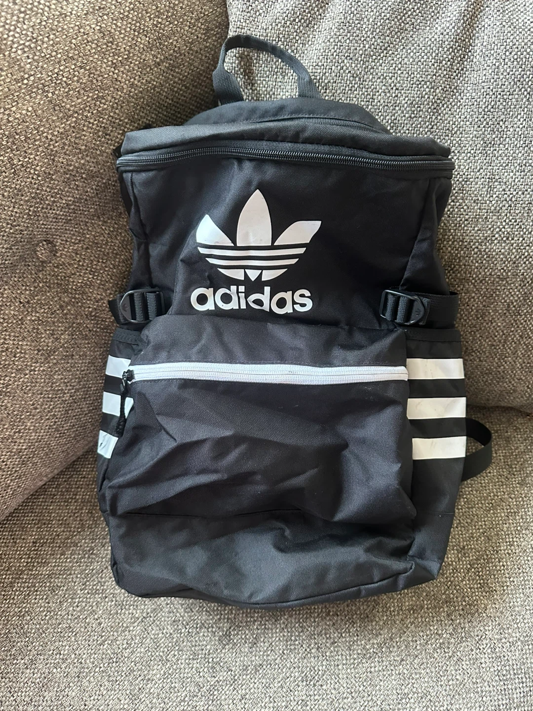 I'm selling a black Adidas backpack. It features the classic three-stripe design on the sides and the Adidas logo on the front. It's in good condition and ready for a new owner! Pick up East 106th st and 1st ave!