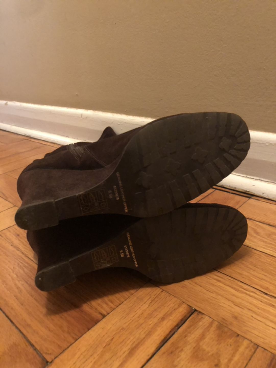 Carlos Falchi Chocolate Brown Suede Boots Size 6.5, 3.5” Heels