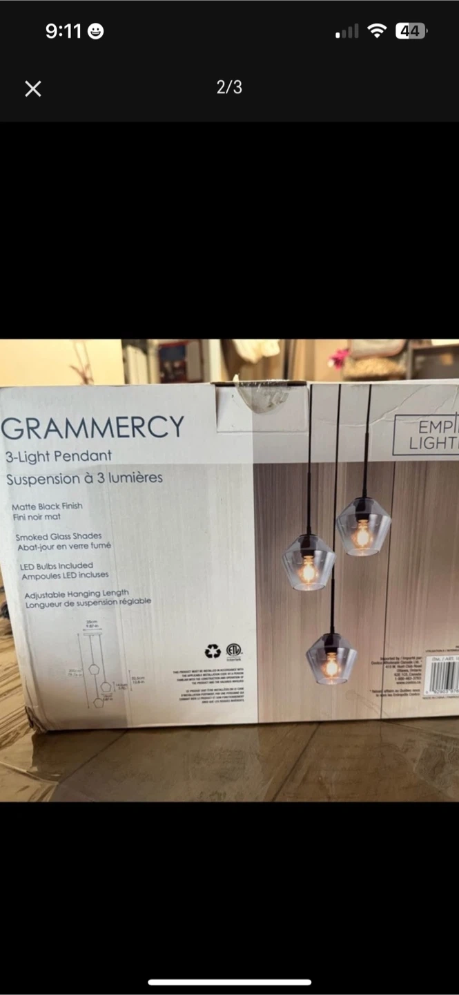 Selling a brand new Empire Lighting Grammercy 3-Light Pendant still in its original box! This stylish suspension light features a matte black finish and smoked glass shades. It comes with LED bulbs included and has an adjustable hanging length. Perfect for adding a modern touch to any room!