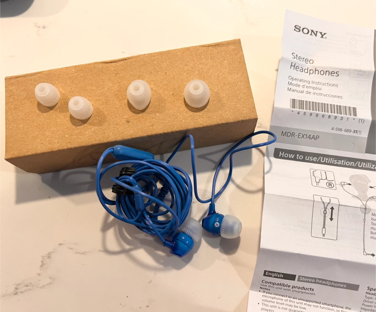 Very long wire - 1.2 meters (47.5 inches) Downloadable app Hands-free phone calls Noise cancellation Cash only Near 128 and 64 avenue