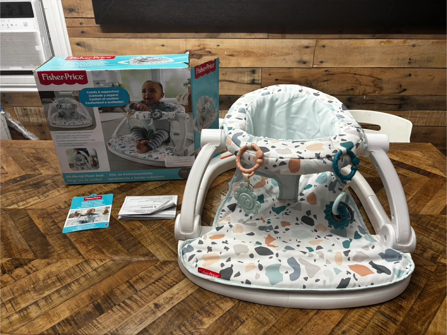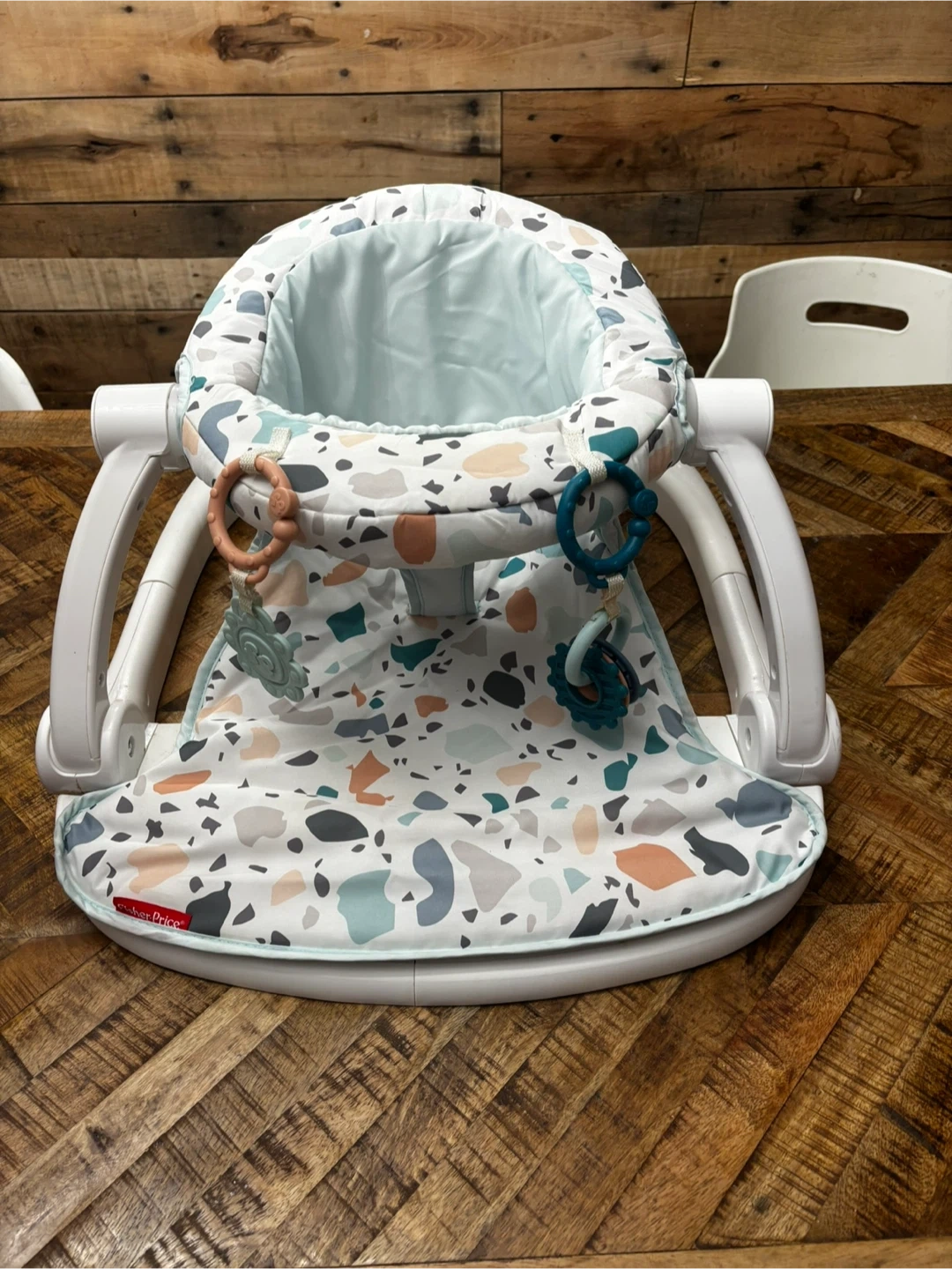 Selling our Fisher-Price Sit-Me-Up Floor Seat. It comes with the box and is in great condition. It's perfect for supporting your little one as they learn to sit up. The seat is designed to be comfy and supportive, and it includes toys to keep your baby entertained. From a pet friendly, smoke free home. Porch Pickup Only.