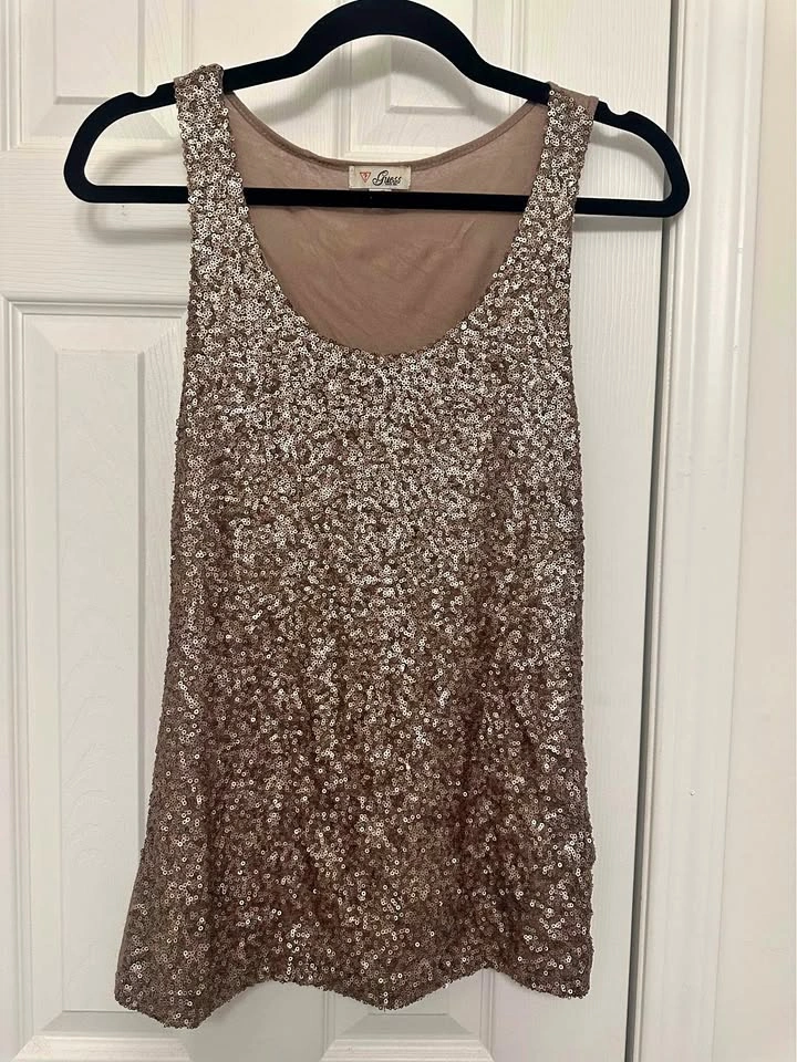 Buy & SellBrown Guess Sequin ShirtBrown Guess Sequin Shirt$5Brown sequin shirt from Guess, size S. Very small hole on right side, barely noticeable (see last picture).WHERE TO MEETCheck LocationView MapSELLERStephSherwood261 review0 chats·0 favorites·3 viewsSEND CHAT TO SELLERHi Steph! I’m interested in your listing.Hi Steph! I’m interested in your listing.Get the Karrot app to chatSign In to chat