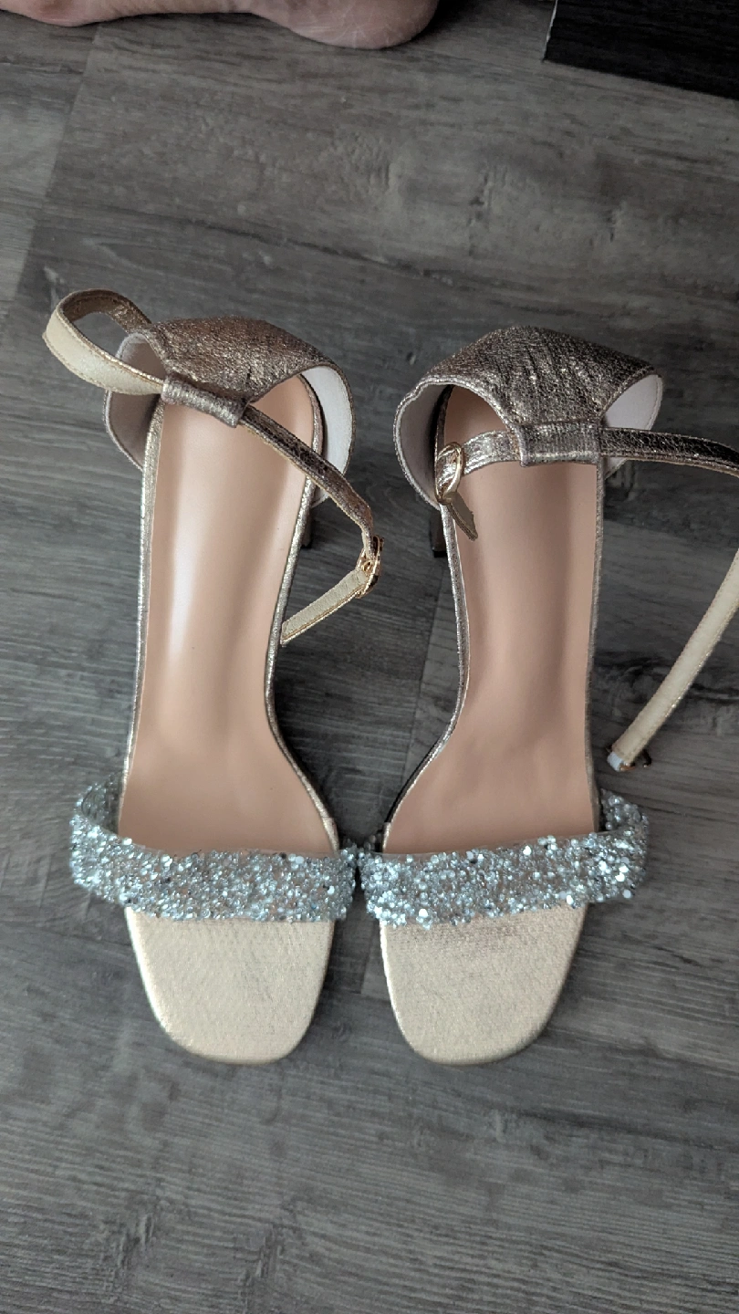 Selling a pair of gold glitter heels, size 39. The glitter straps are still sparkly! Perfect for a night out or a special occasion.