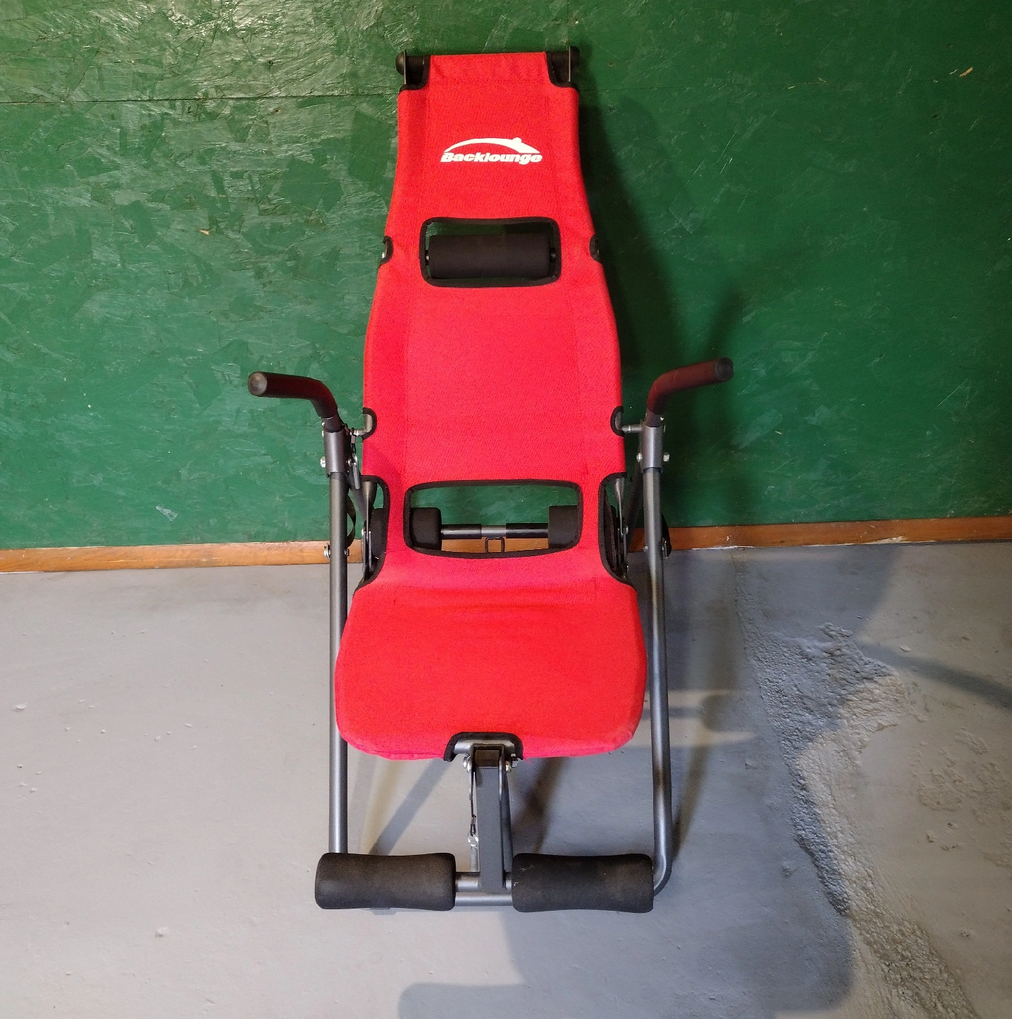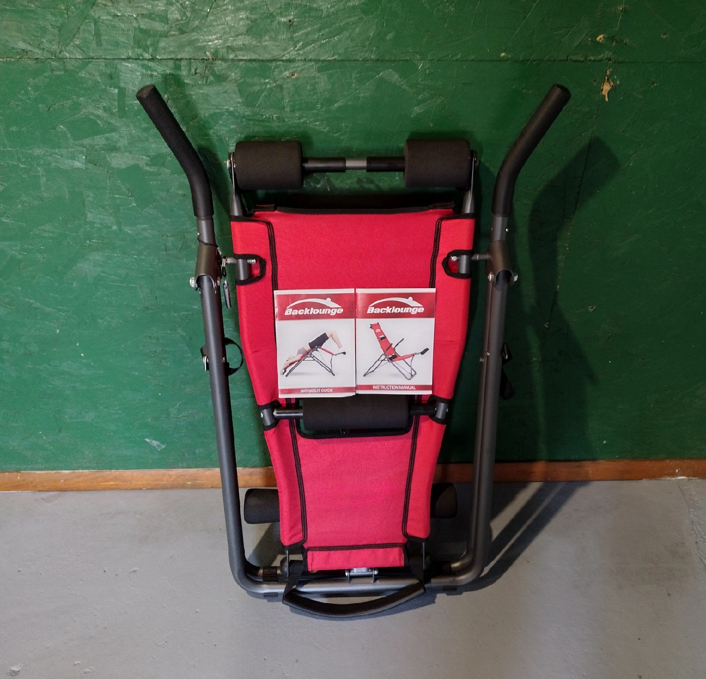 Selling a Backlounge inversion therapy chair in red. It's in good condition and ready to help you relax and stretch out your back! The chair is designed to provide comfortable inversion therapy at home.