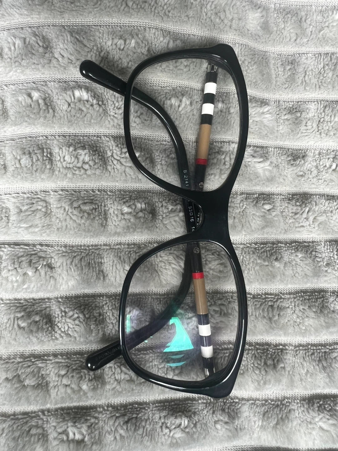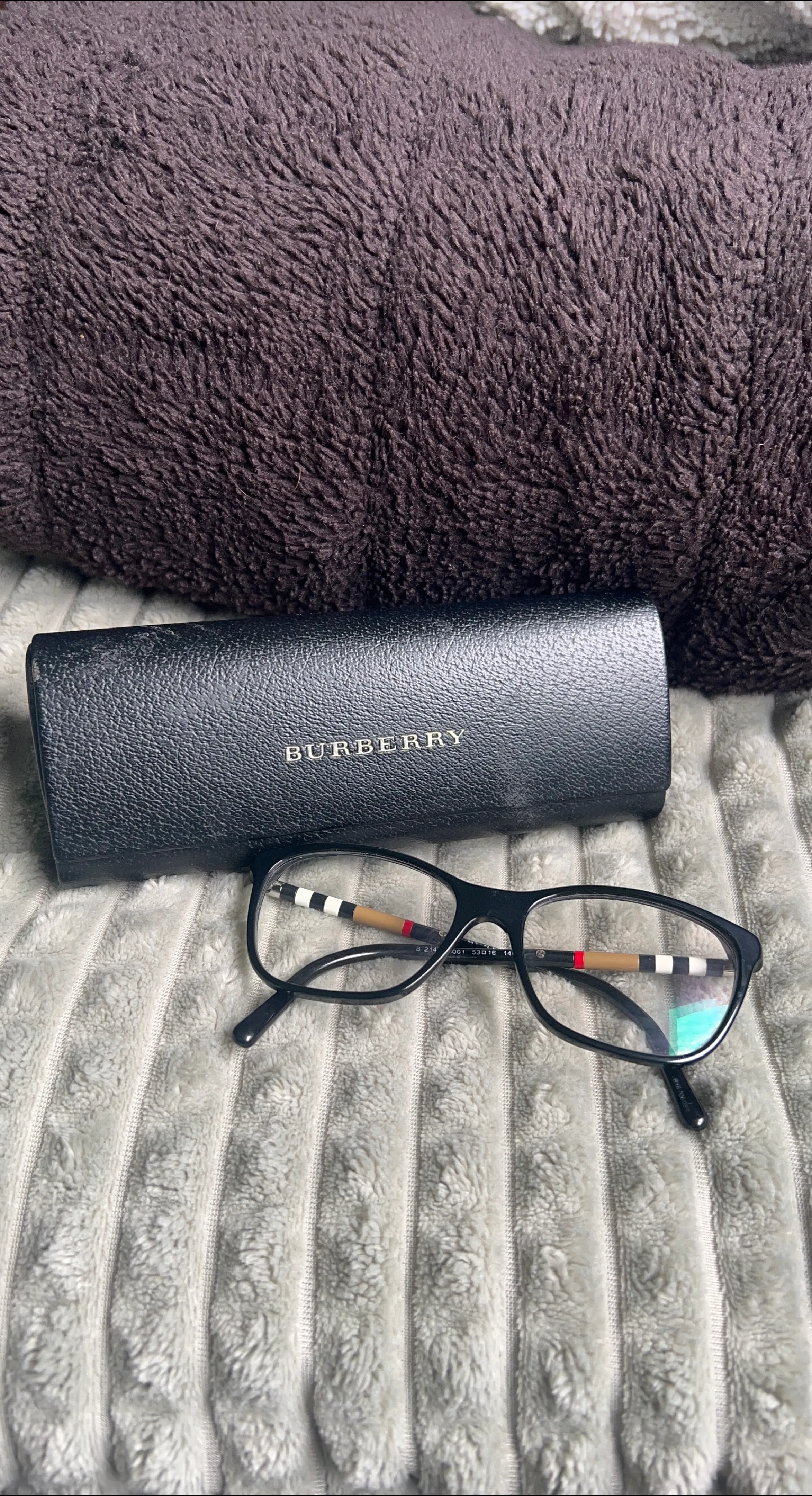 Selling a pair of Burberry eyeglasses, model B2141. The glasses come with their original Burberry case. Size is 53-16-140. Black frame with the iconic Burberry pattern on the temples. The arms might need to be adjusted to fit your face, may need to change lenses to fit your prescription.