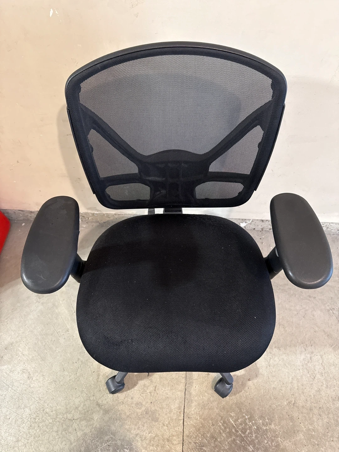 Selling a comfortable black mesh office chair. It's in great shape and ready for a new home office! The mesh back provides great support and breathability, perfect for long workdays. The adjustable features allow you to customize the chair to your preferred comfort level. If you're looking for a reliable and ergonomic office chair, this is a great option!
