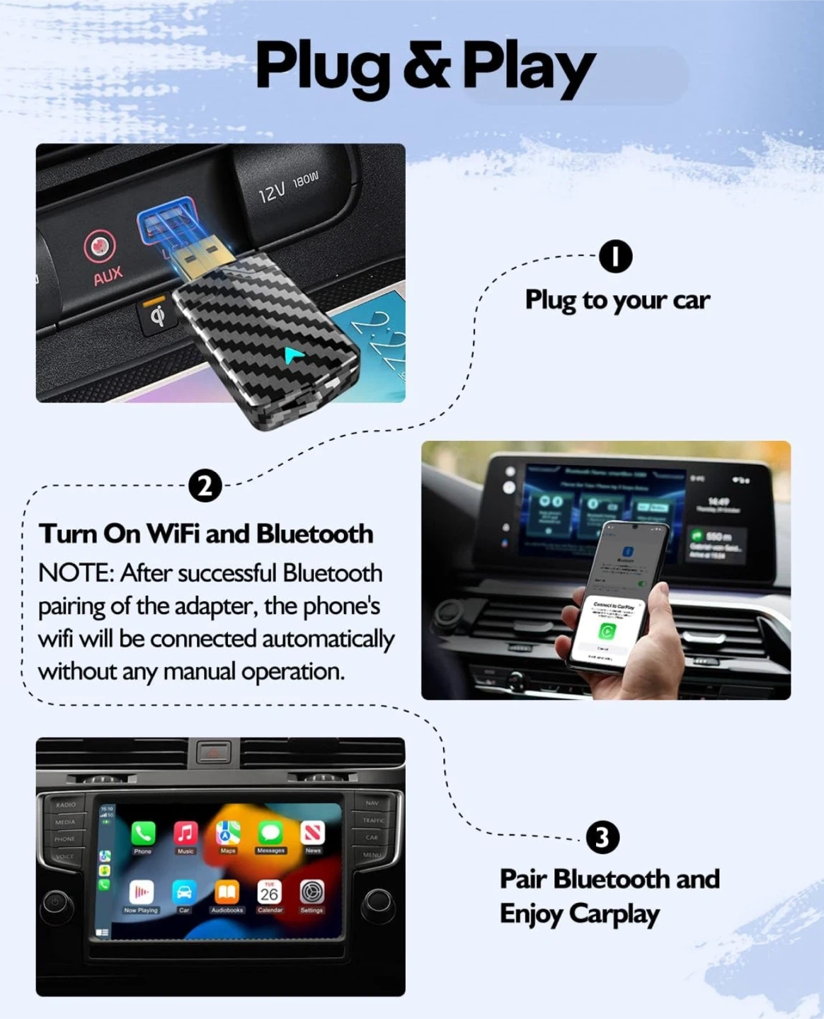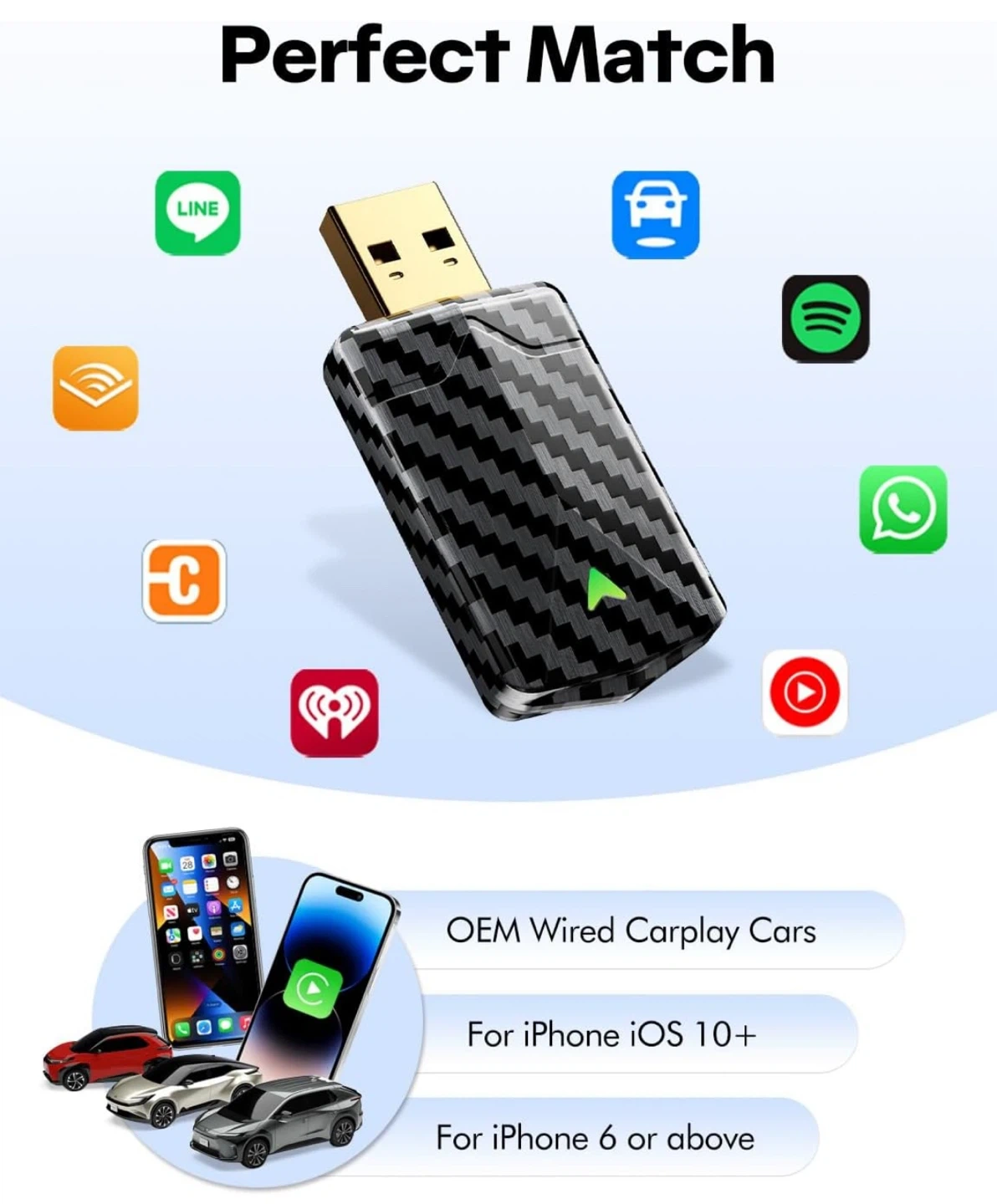 2025 Pro Mini Wireless CarPlay Adapter for Apple, Converts Wired to Wireless CarPlay Adapter for iPhone, Fast Stable Connection, Lower Latency, Easy Setup in 2016+ Wired Cars Black