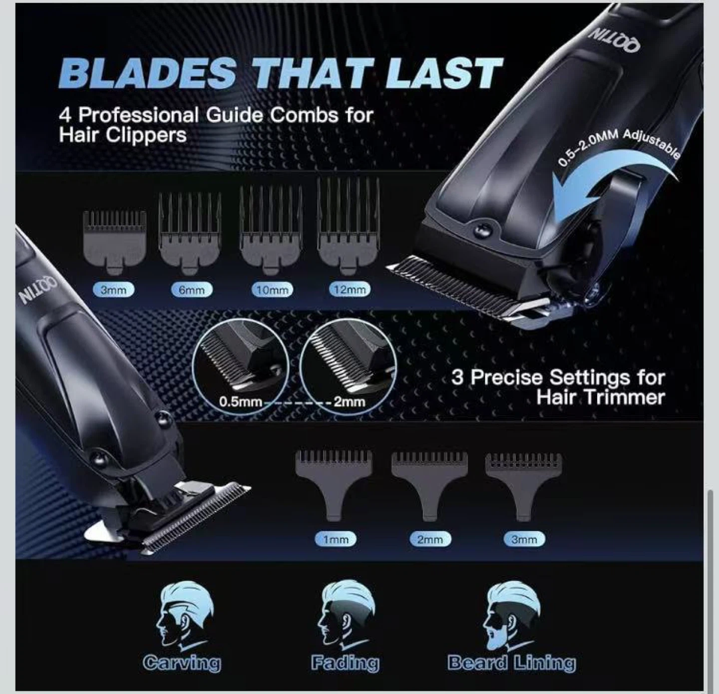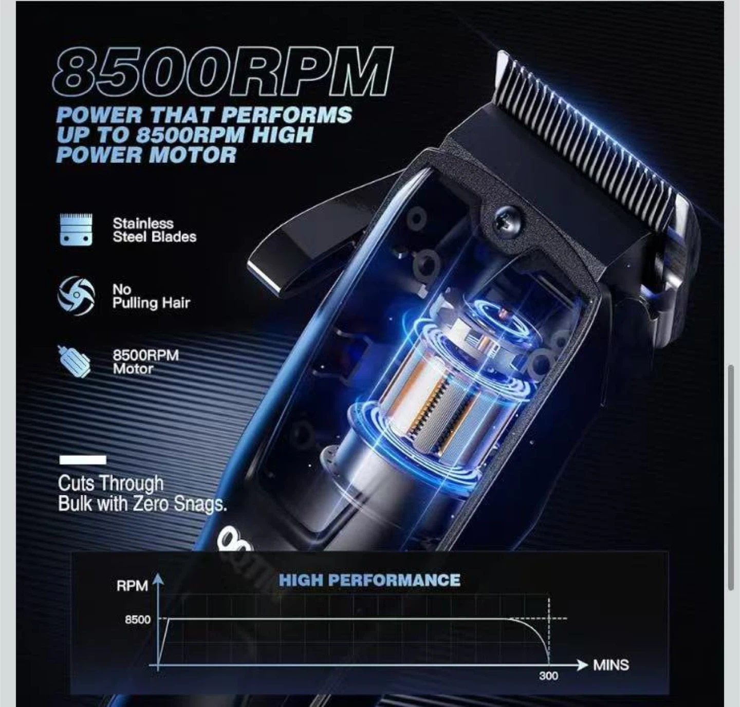 Hair Clippers for Men Professional, Cordless Electric Hair Trimmer with Fast Charging Port, Up to 5 Hours Runtime Hair Cutting Kit, Barber & Home Clippers and Trimmers Set (Black)