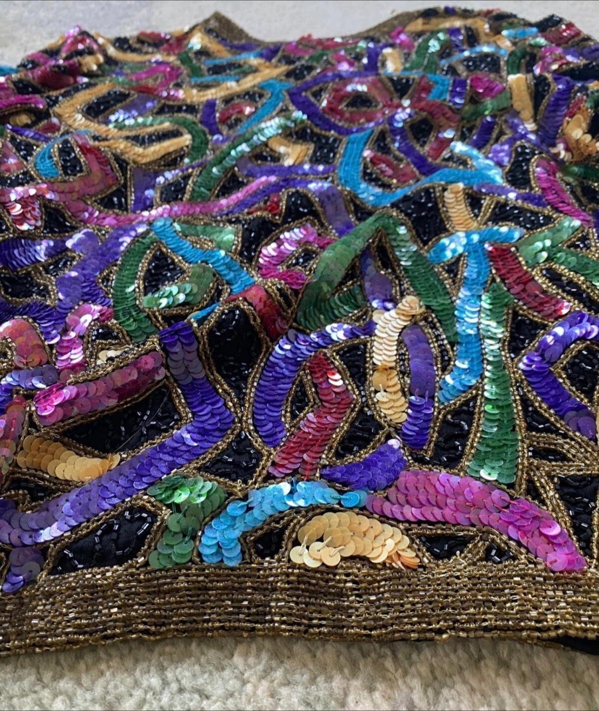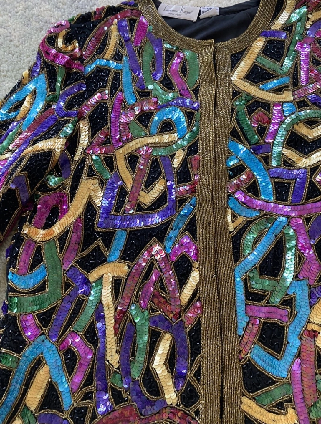 Amazing vintage condition perfect for the upcoming holidays or add a pop of color to your wardrobe! Dazzling sequin blazer with confetti like pattern. Rare collectors staple piece. Pick up Tribeca.