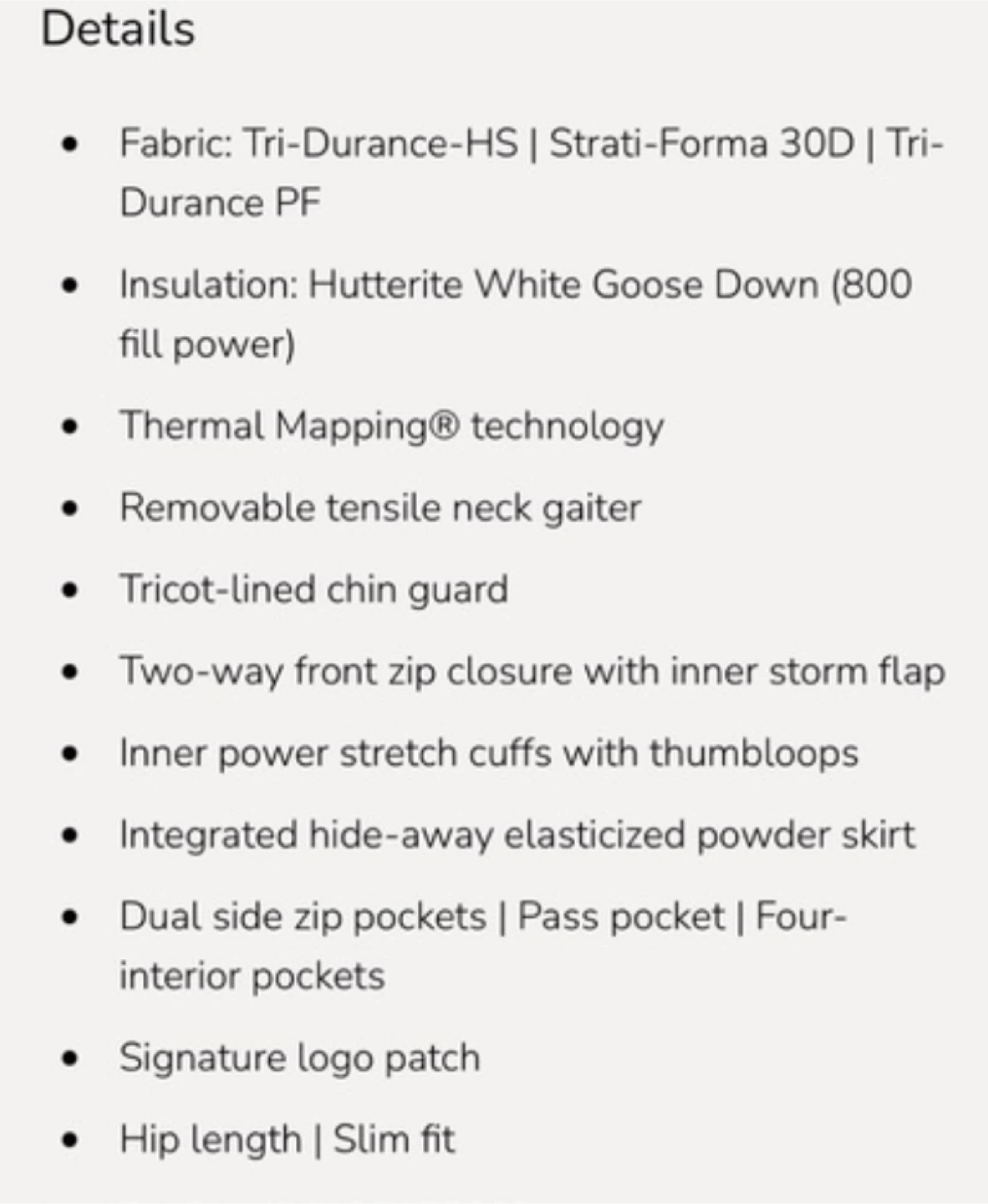 Authentic ❗️Canada Goose Hybridge Sutton coat in black, size small. It features Tri-Durance-HS, Strati-Forma 30D, and Tri-Durance PF fabrics. The insulation is Hutterite White Goose Down with 800 fill power. It also has Thermal Mapping technology, a removable tensile neck gaiter, and a tricot-lined chin guard. The coat has a two-way front zip closure with an inner storm flap, inner power stretch cuffs with thumbloops, and an integrated hide-away elasticized powder skirt. There are dual side zip pockets, a pass pocket, and four interior pockets. It's a hip-length coat with a slim fit