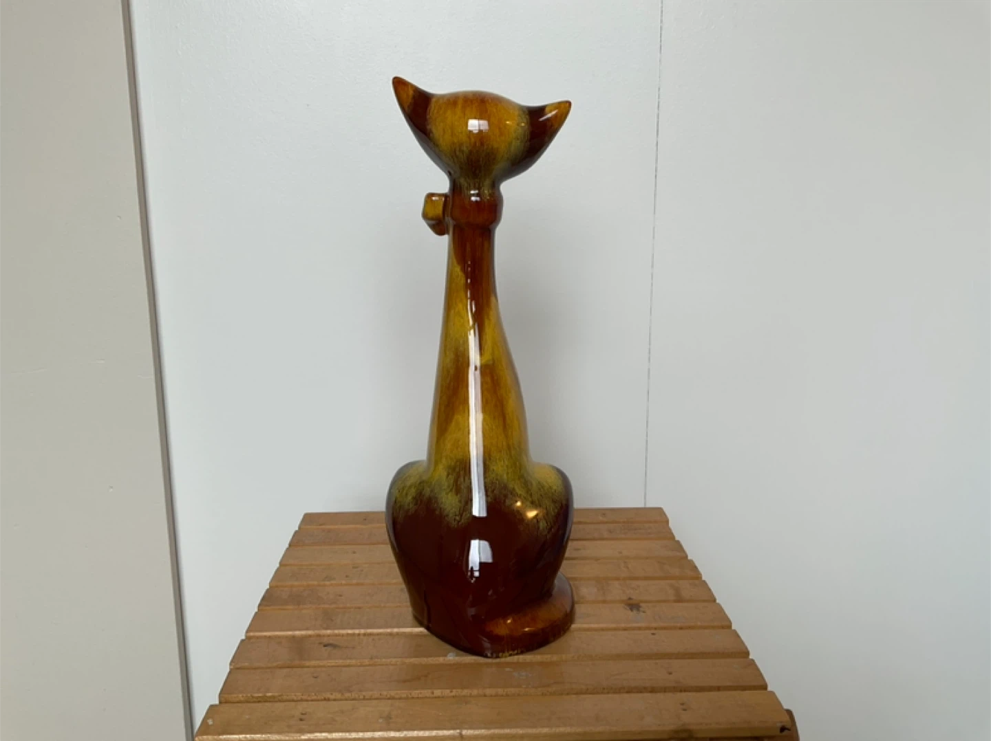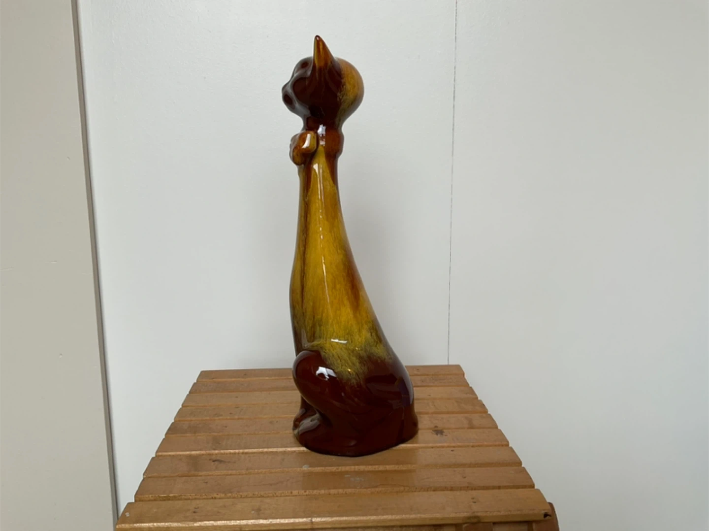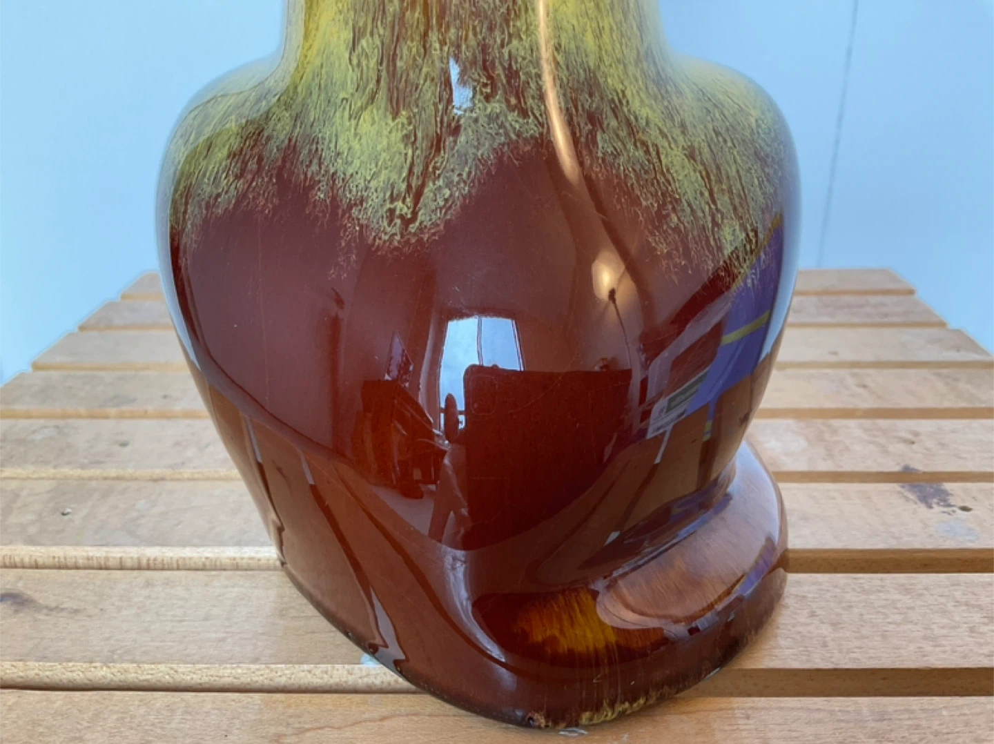 Harvest gold drip glazing has some crazing, no chips or cracks. Height is 12 1/2” base measures 4 1/2”. Marine Drive and Kerr area. Cash only.
