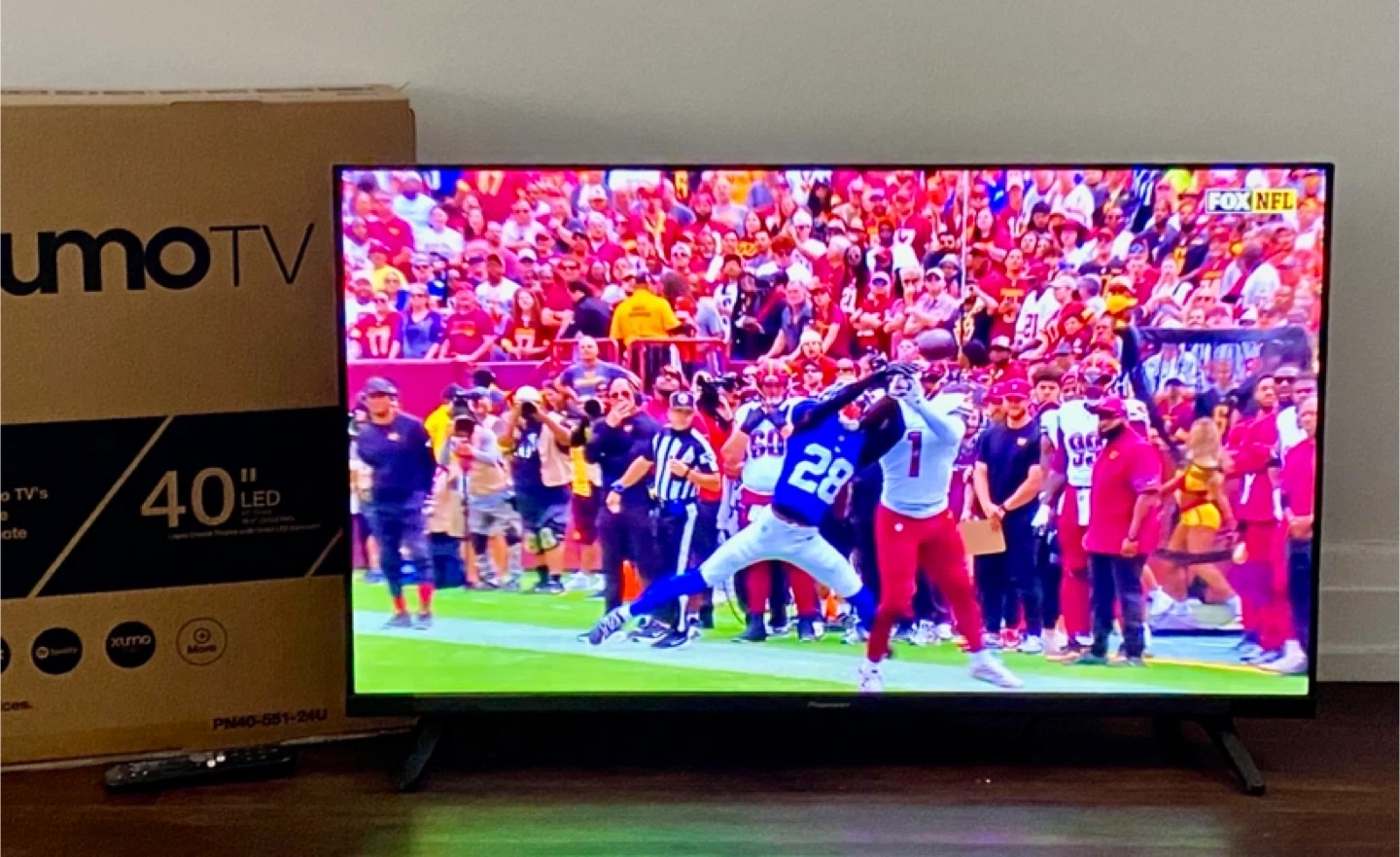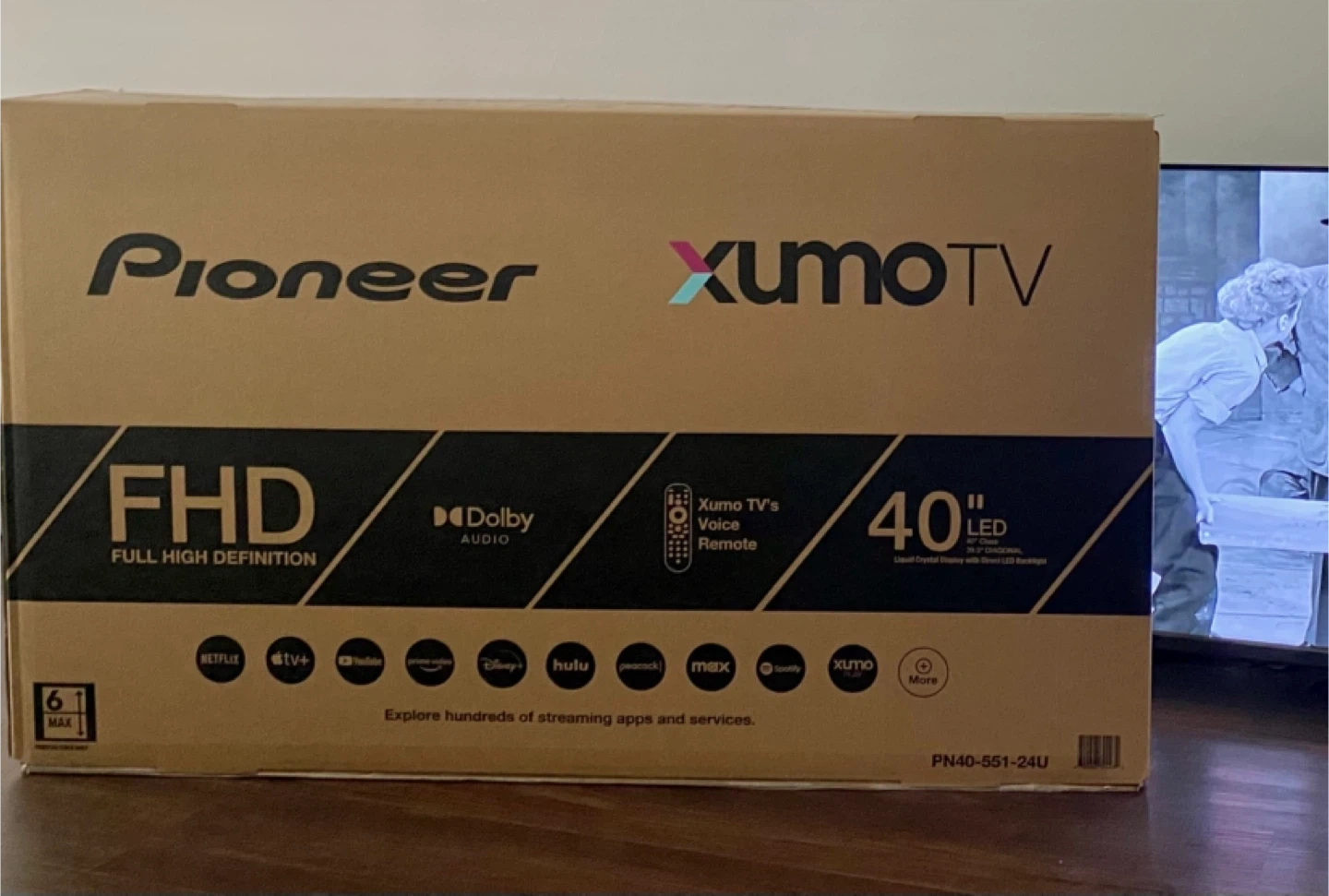 Selling a Pioneer Xumo TV, it's a 40" LED Full High Definition television. The box is included. It also has Xumo TV's Voice Remote. Great color. Almost new with some protection still attached from original packaging. Owner is moving to Europe.