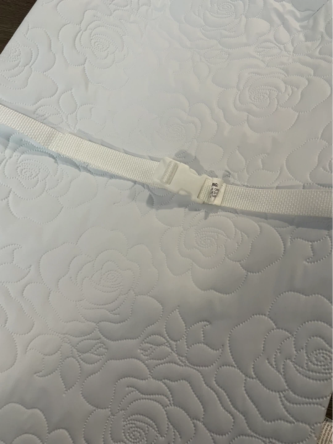 Selling a Infant Changing Pad. It's in excellent condition and ready for a new home. The pad is white with a quilted rose pattern and includes a safety strap for added security. Perfect for keeping your little one comfortable and secure during diaper changes