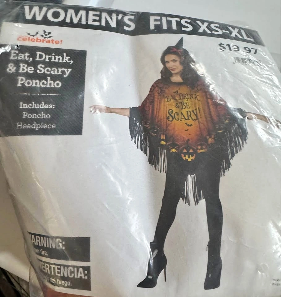 12Women’s one size fits XS-XL. That says: “Eat, Drink & Be scary”. Brand New. $15