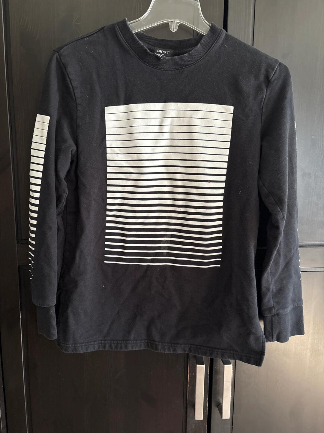 Selling a Forever 21 men's sweatshirt in size small. It's black with a cool graphic design on the front and sleeves. In great condition!