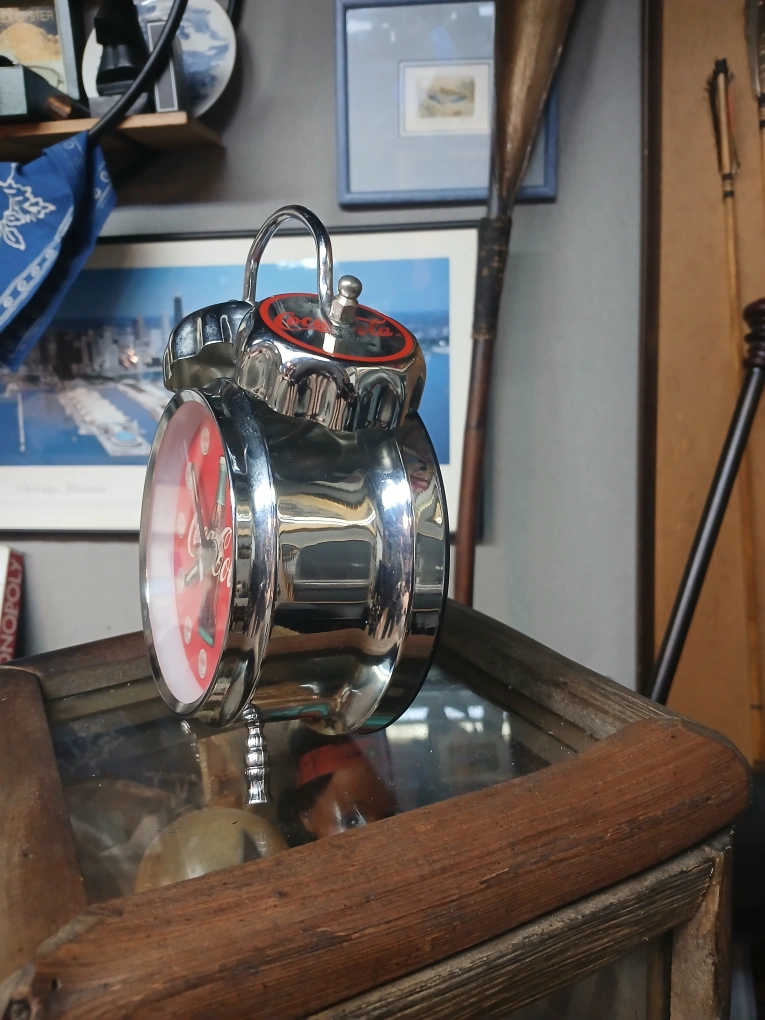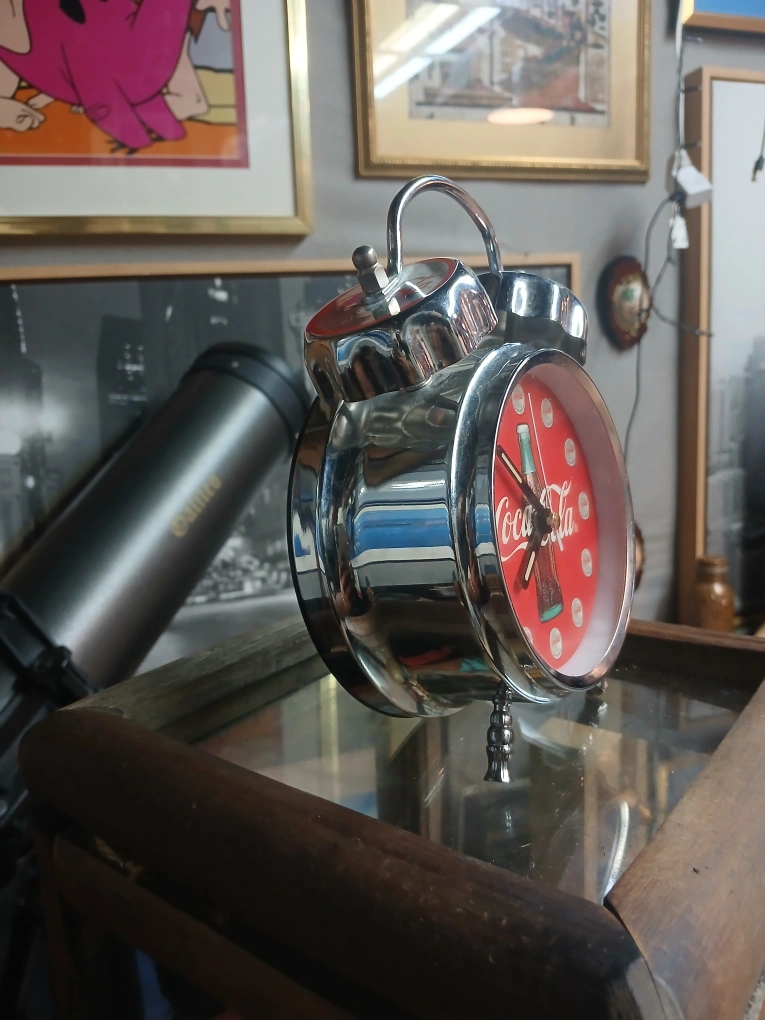 Selling a Vintage 90's Coca-Cola themed alarm clock. The clock face features the Coca-Cola logo and bottle design. It's a fun and unique piece for any Coca-Cola collector or vintage decor enthusiast.
