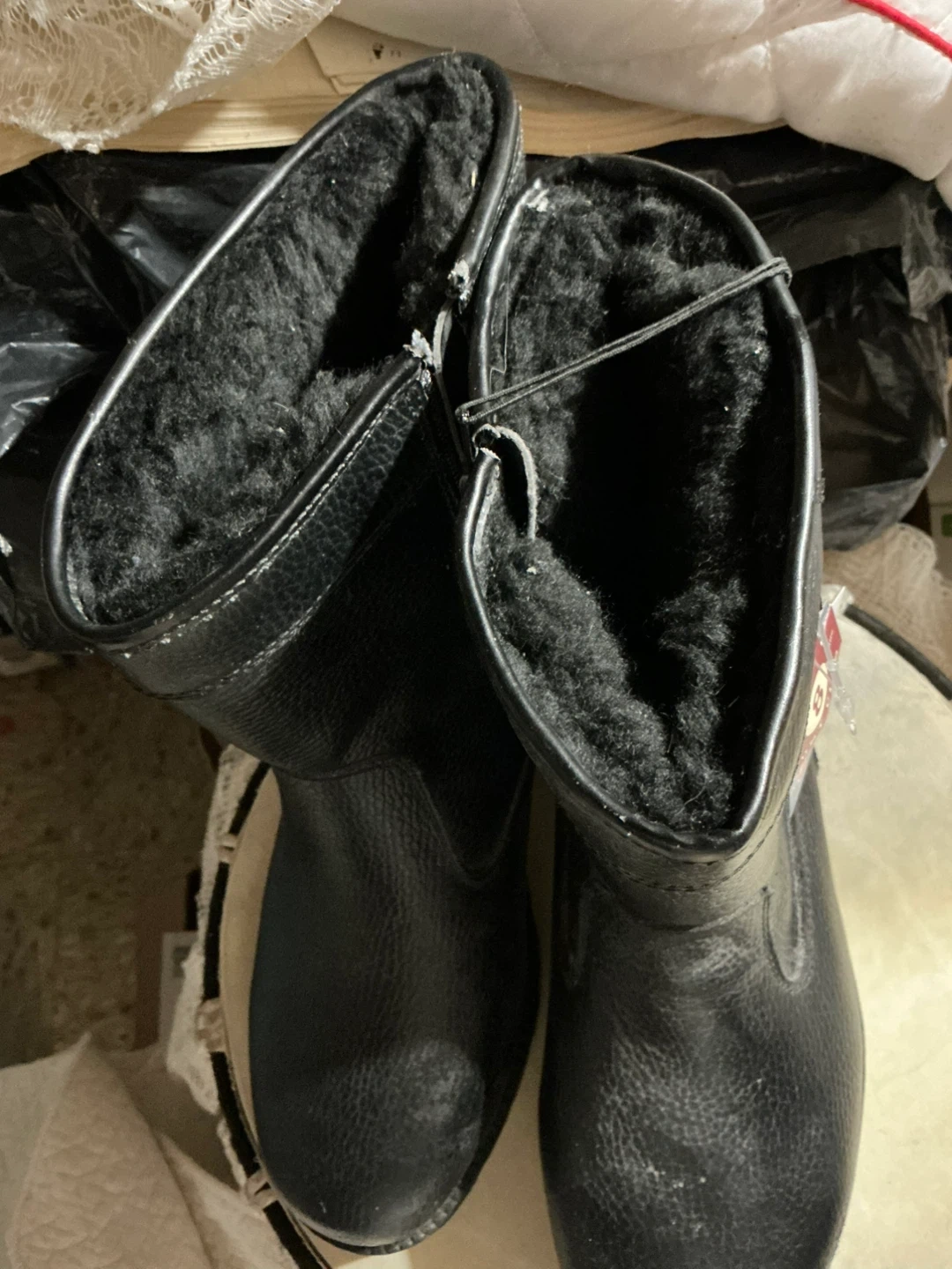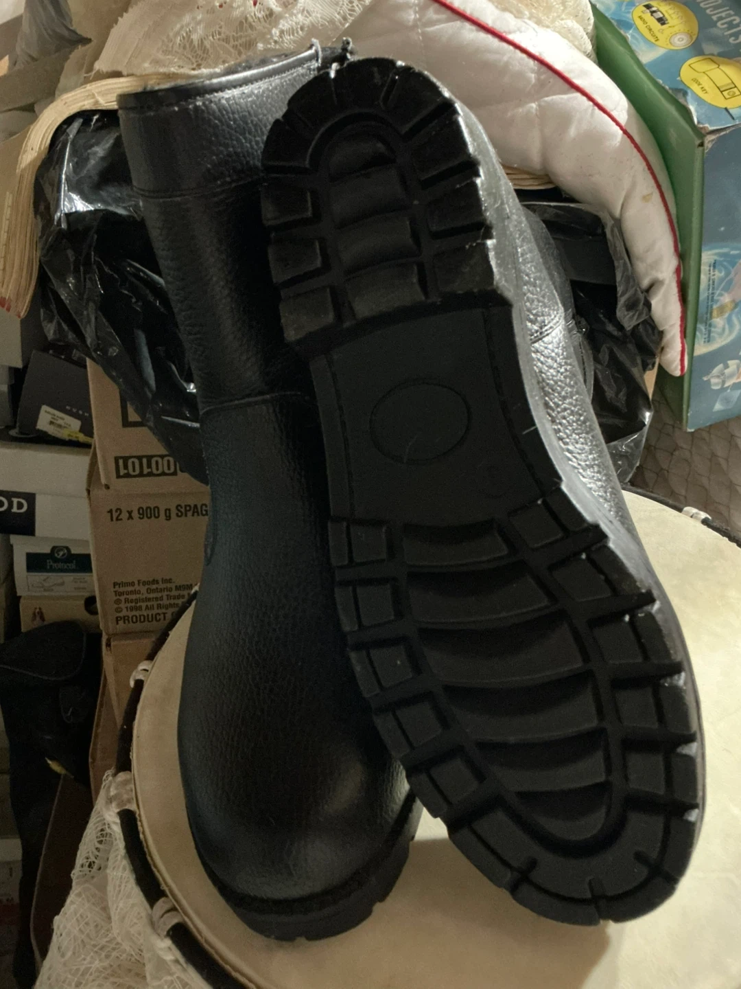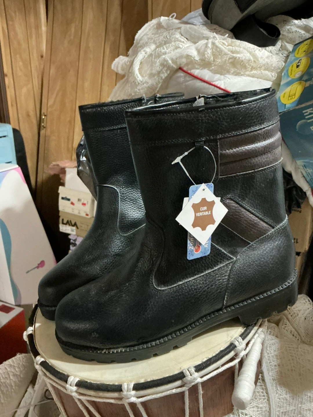 Selling a pair of black leather winter boots. They are in good condition and perfect for the cold weather! The boots are made of real leather (Cuir Veritable) and have a sturdy sole for traction. They are lined with soft, warm material to keep your feet cozy during the winter months