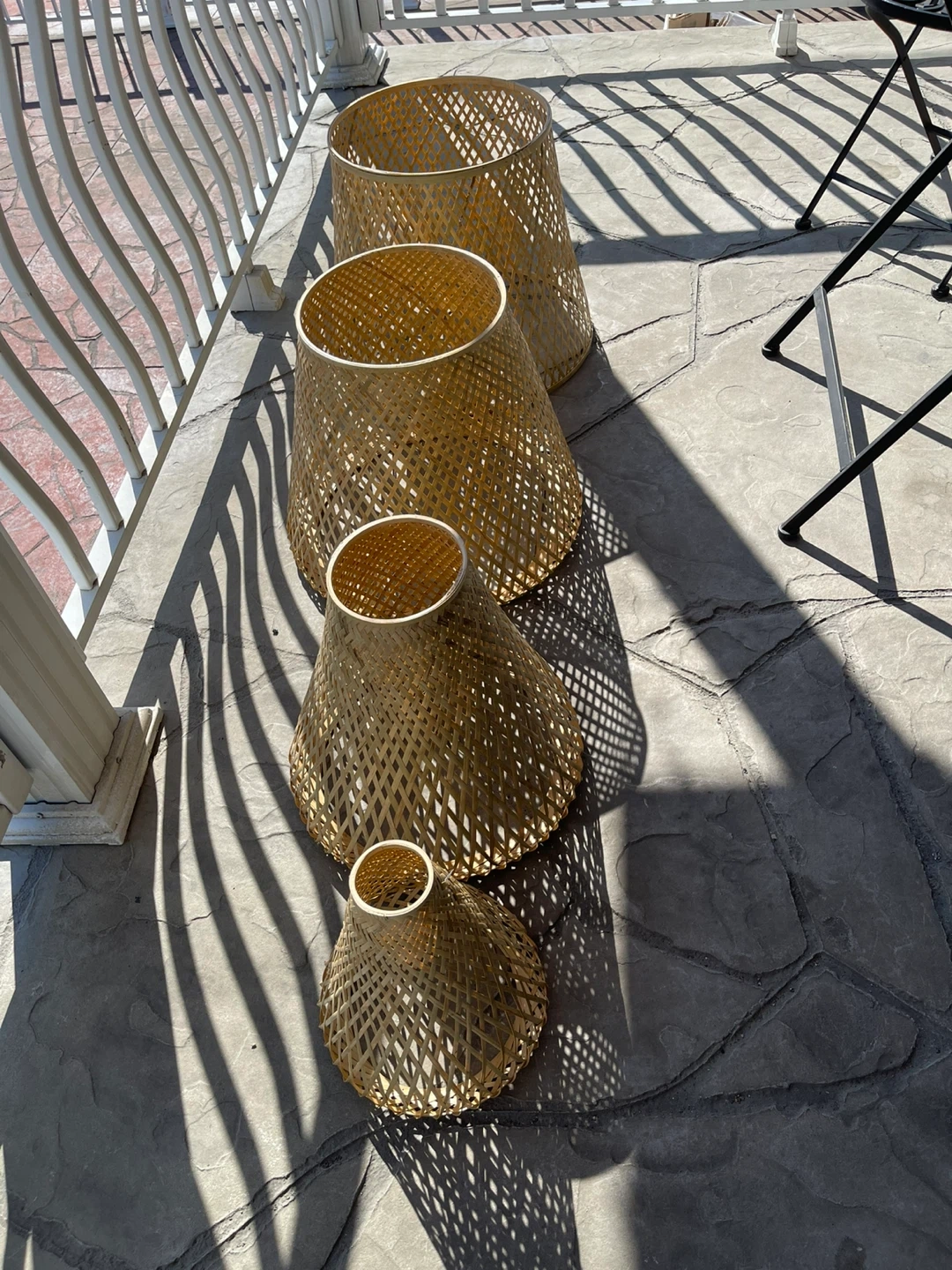Selling a set of 4 woven bamboo Christmas tree. This is perfect for adding a natural and bohemian touch to your home decor. They come in varying sizes, which allows for versatile placement throughout your living space. They are in great condition and ready to brighten up your home!