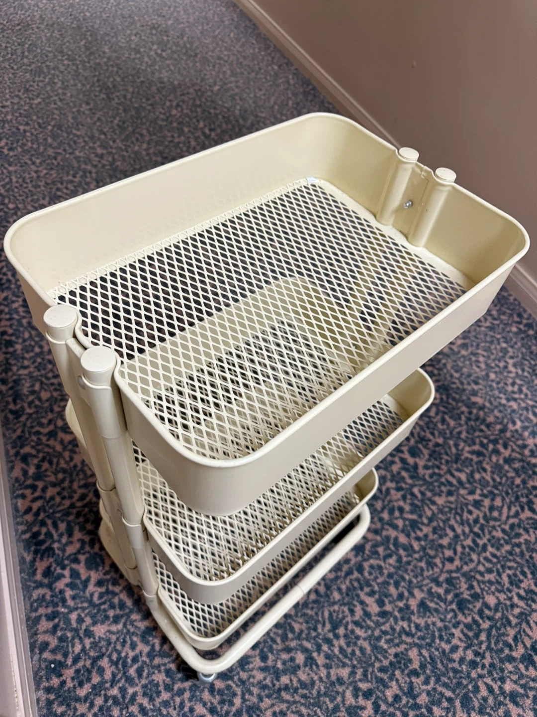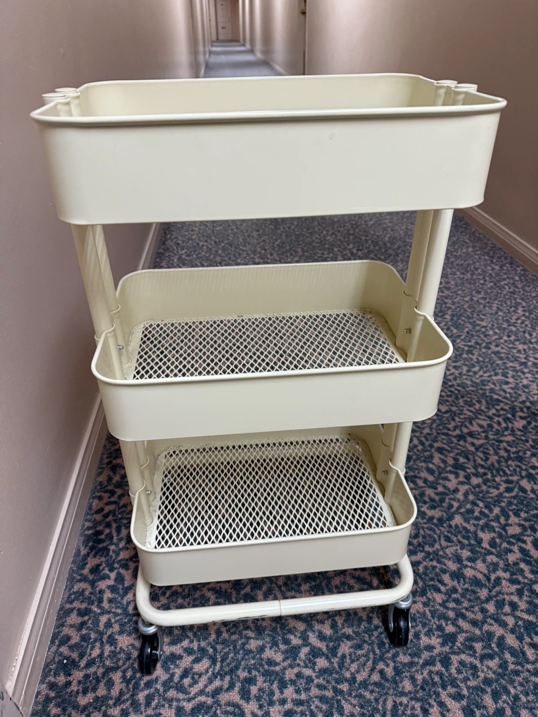 Selling an IKEA Råskog utility cart in cream colour! It's in great condition and ready to help organize your space. This cart is super versatile and can be used in the kitchen, bathroom, or even as a bedside table. Easy to move around thanks to its sturdy construction and four castors