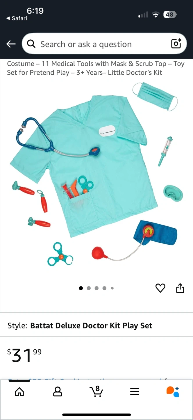 Get your little one ready for pretend play with this Battat Deluxe Doctor Kit Play Set! It comes with 13 pieces, including a mask, scrub top, and various medical tools. This set is great for learning about the human body and how to treat it.