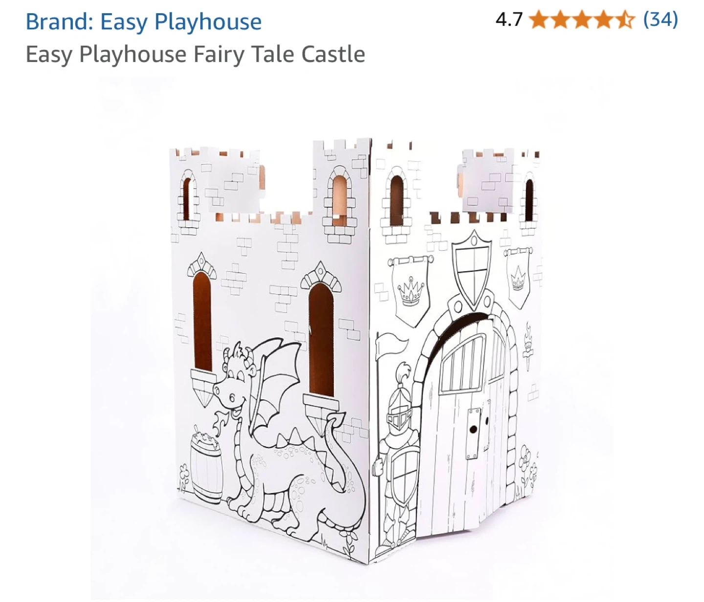 Get ready for some creative fun with this Easy Playhouse Fairy Tale Castle! It's a cardboard playhouse that kids can colour in themselves. Perfect for sparking imagination and hours of entertainment. It's easy to assemble and provides a great space for kids to play and create their own fairy tale adventures
