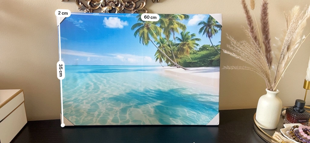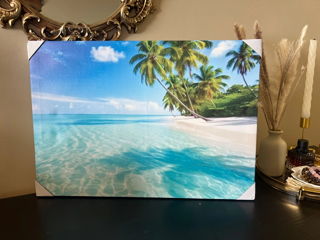 Selling a lovely canvas print featuring a tropical beach scene. It measures 60cm x 35cm and would be a great addition to any room!