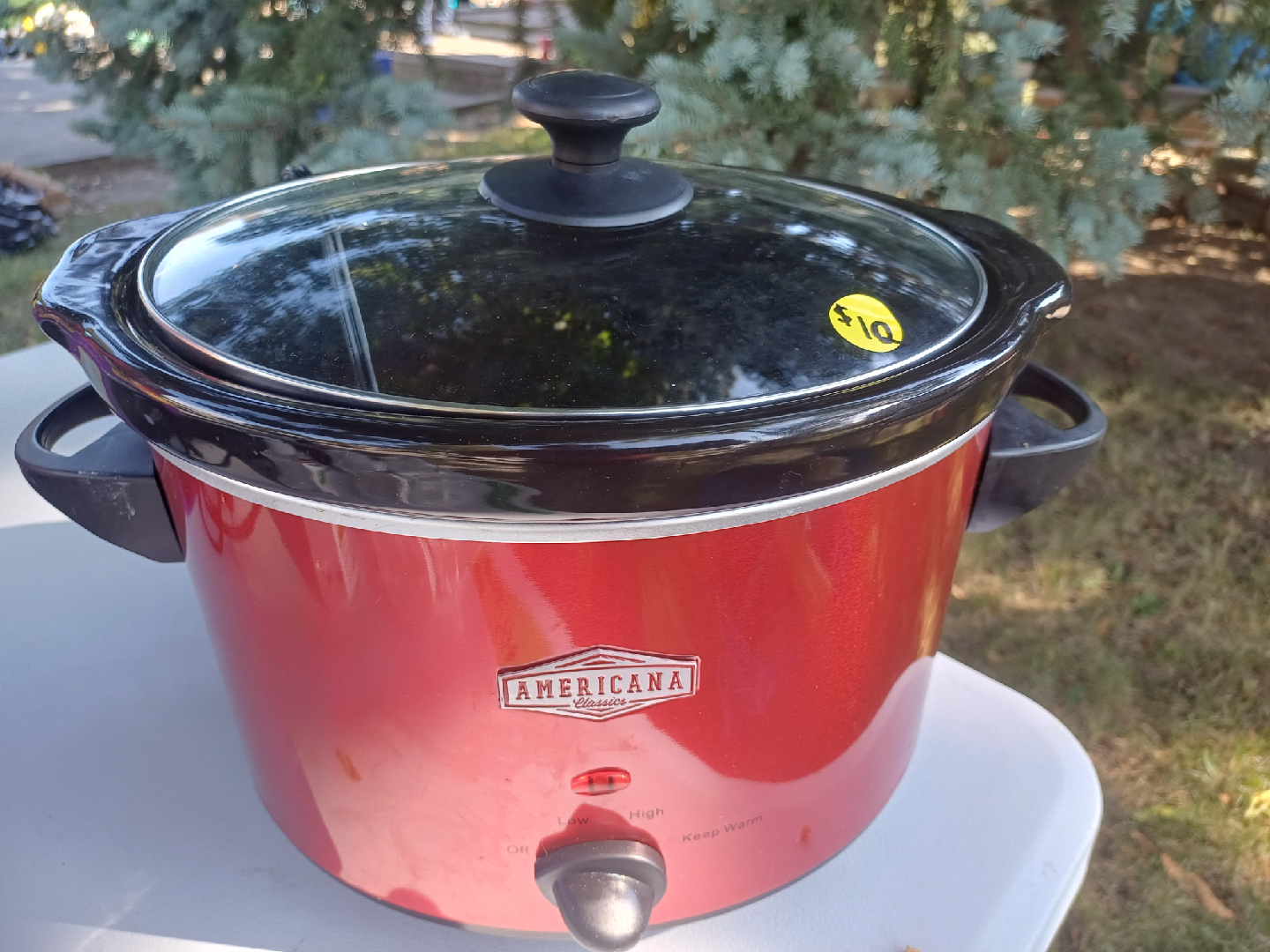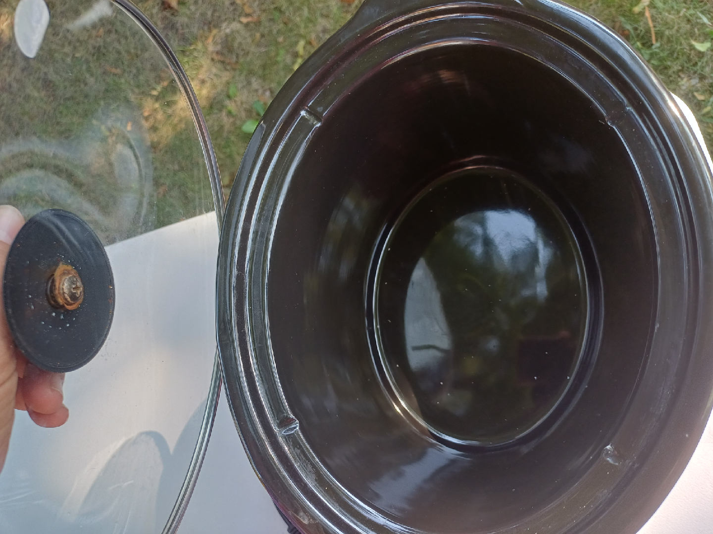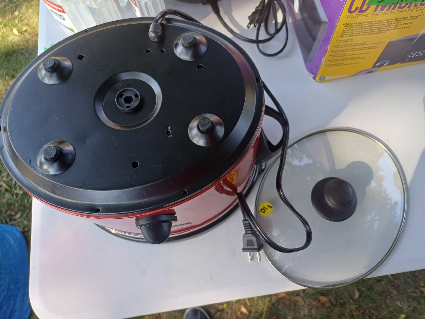 It's in great condition and comes with a glass lid. Perfect for stews, soups, and more!