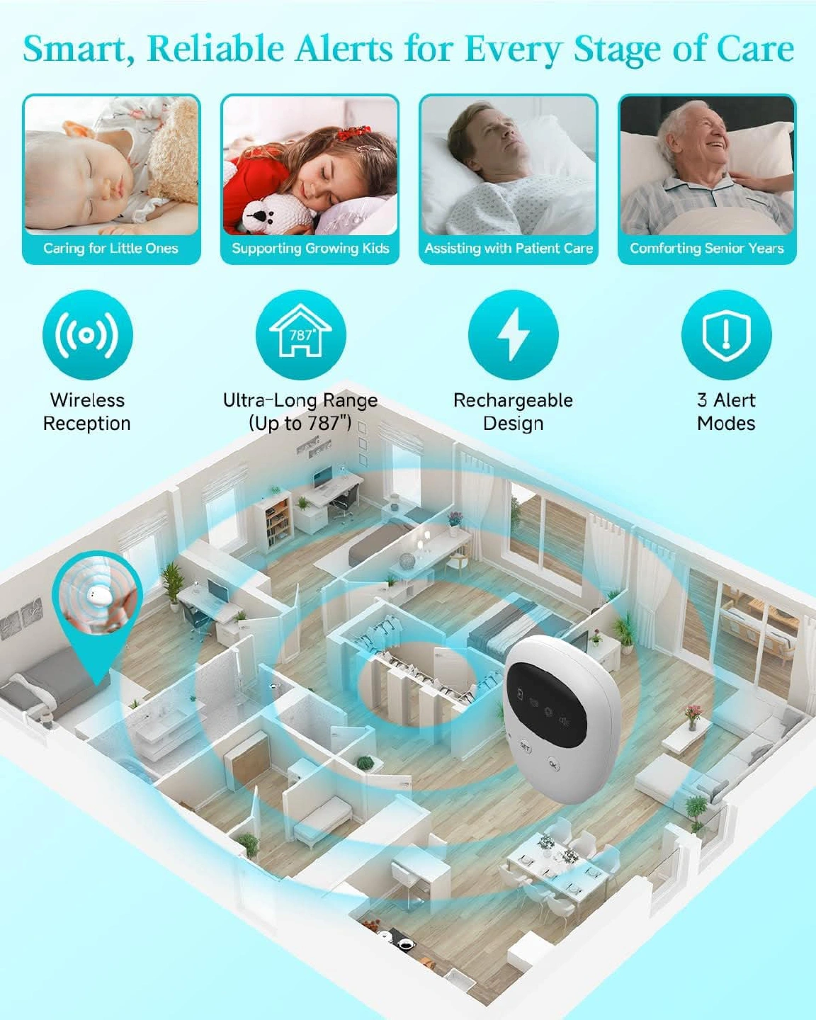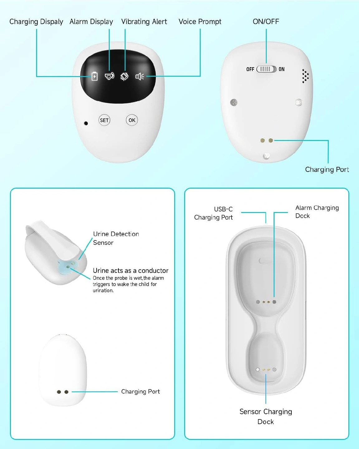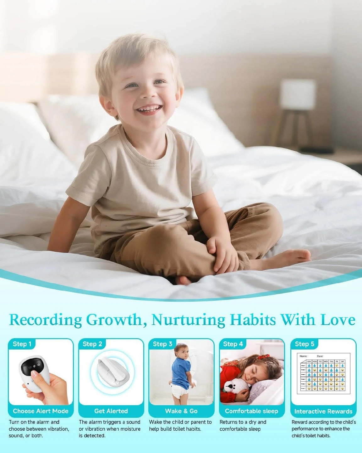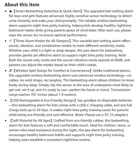 New~Sensitive Sensor For Bed-Wetting,Kids/Seniors, 3 Alert Modes