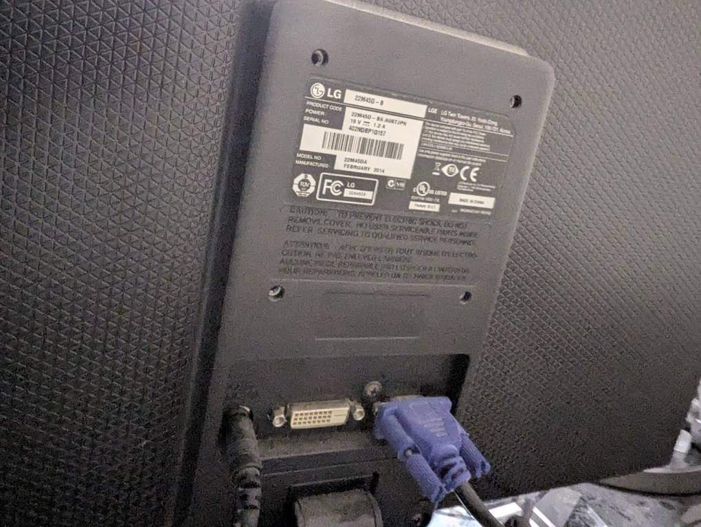 Selling an LG 22M450-B monitor. The model number is 22M45DA. Comes with power cable. Works with VGA.