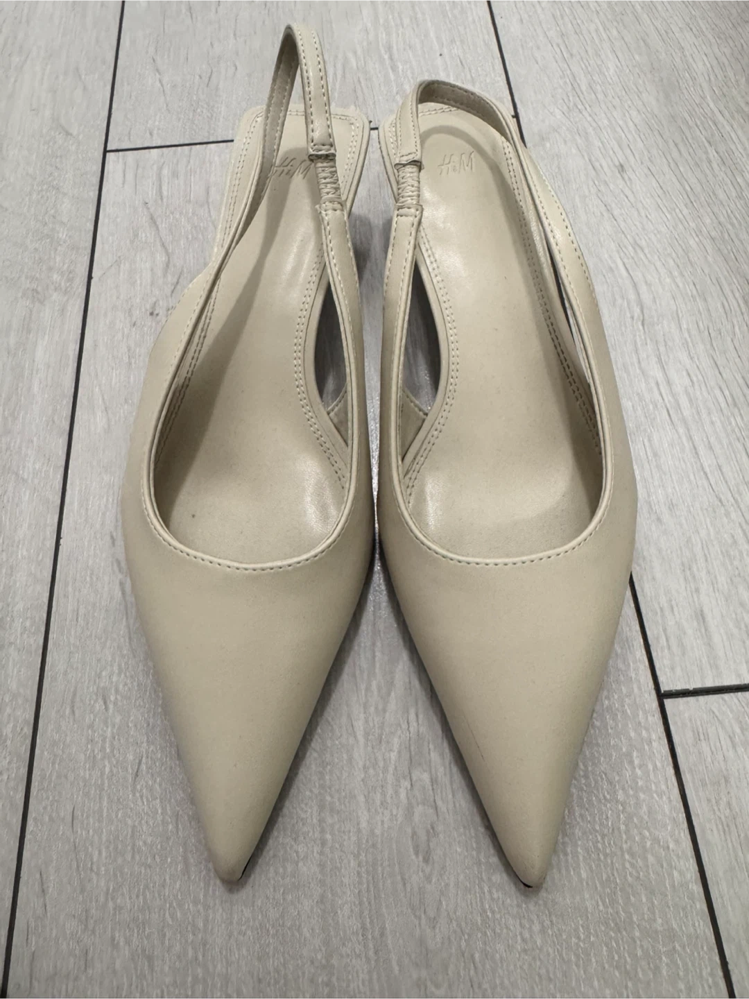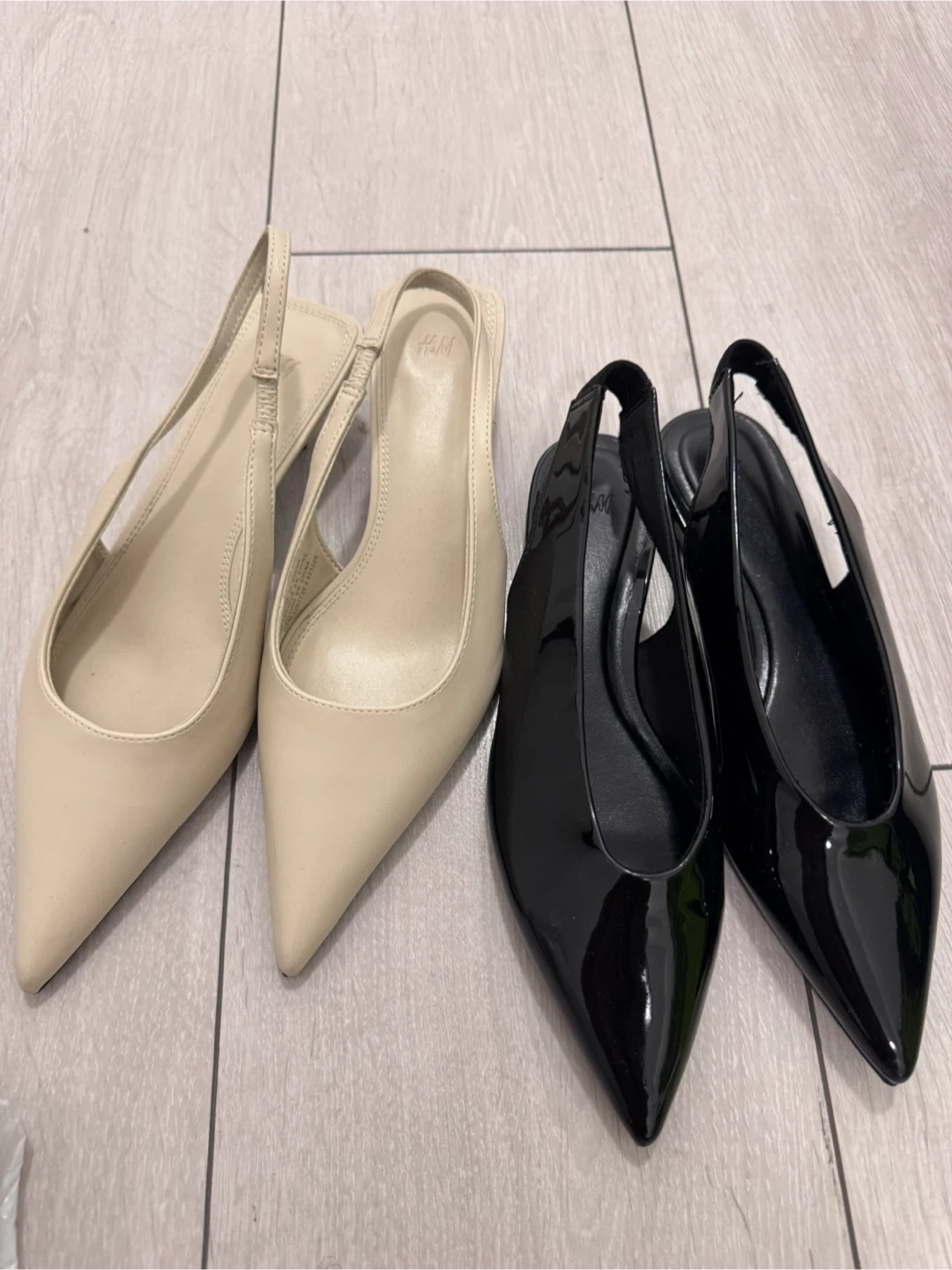 Selling two pairs of H&M pointed slingbacks! One pair is beige and the other is black. They are in great condition and ready for a new home. The size is 35.