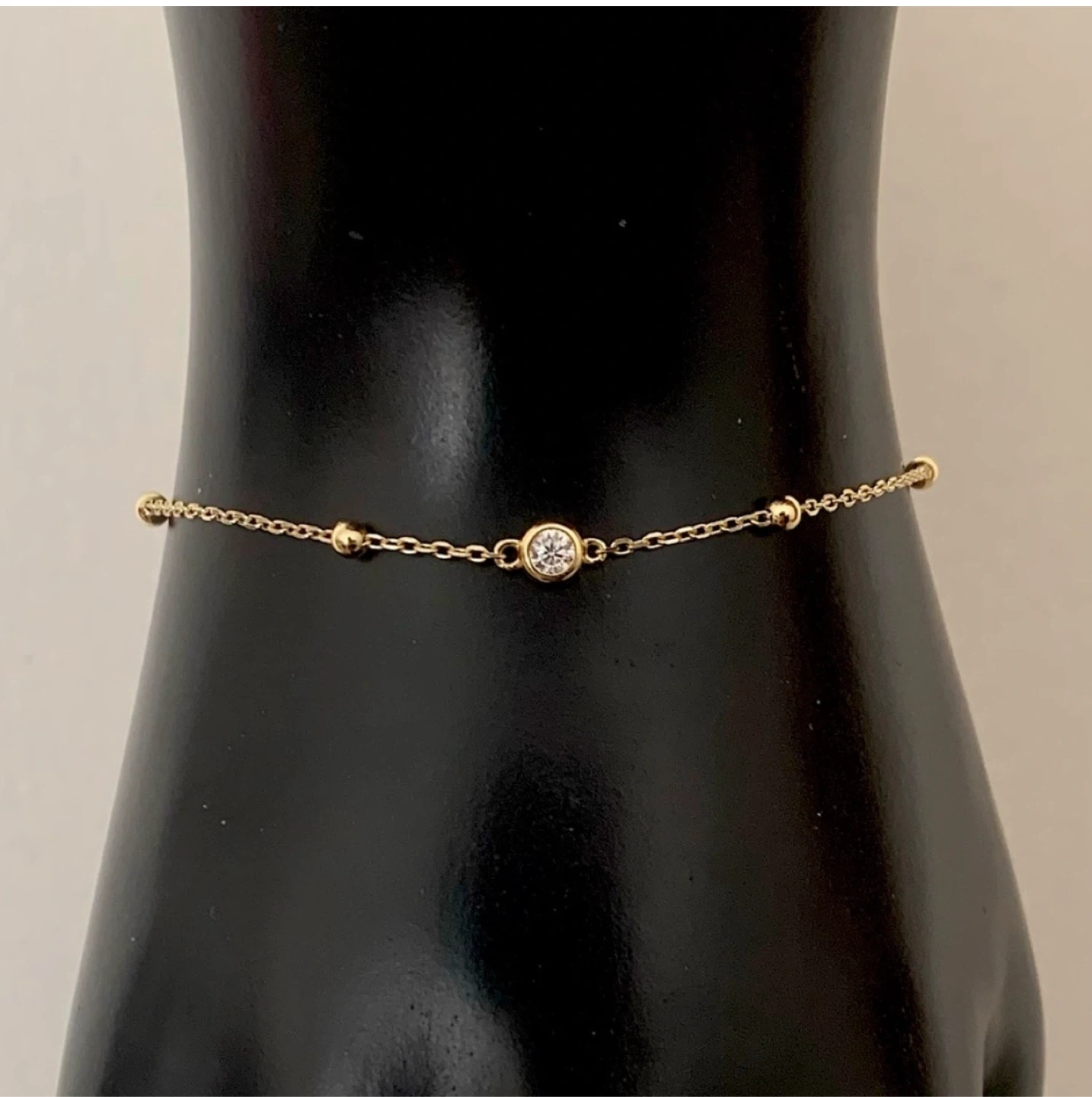 NEW 14k Gold Moissanite Bezel Set Satellite Chain Bracelet