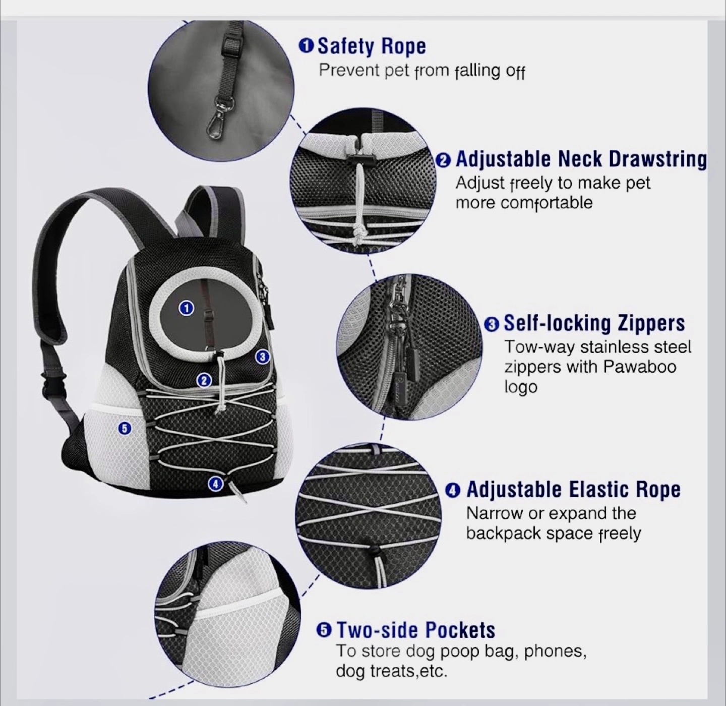 Pawaboo Pet Carrier Backpack - Black & Grey