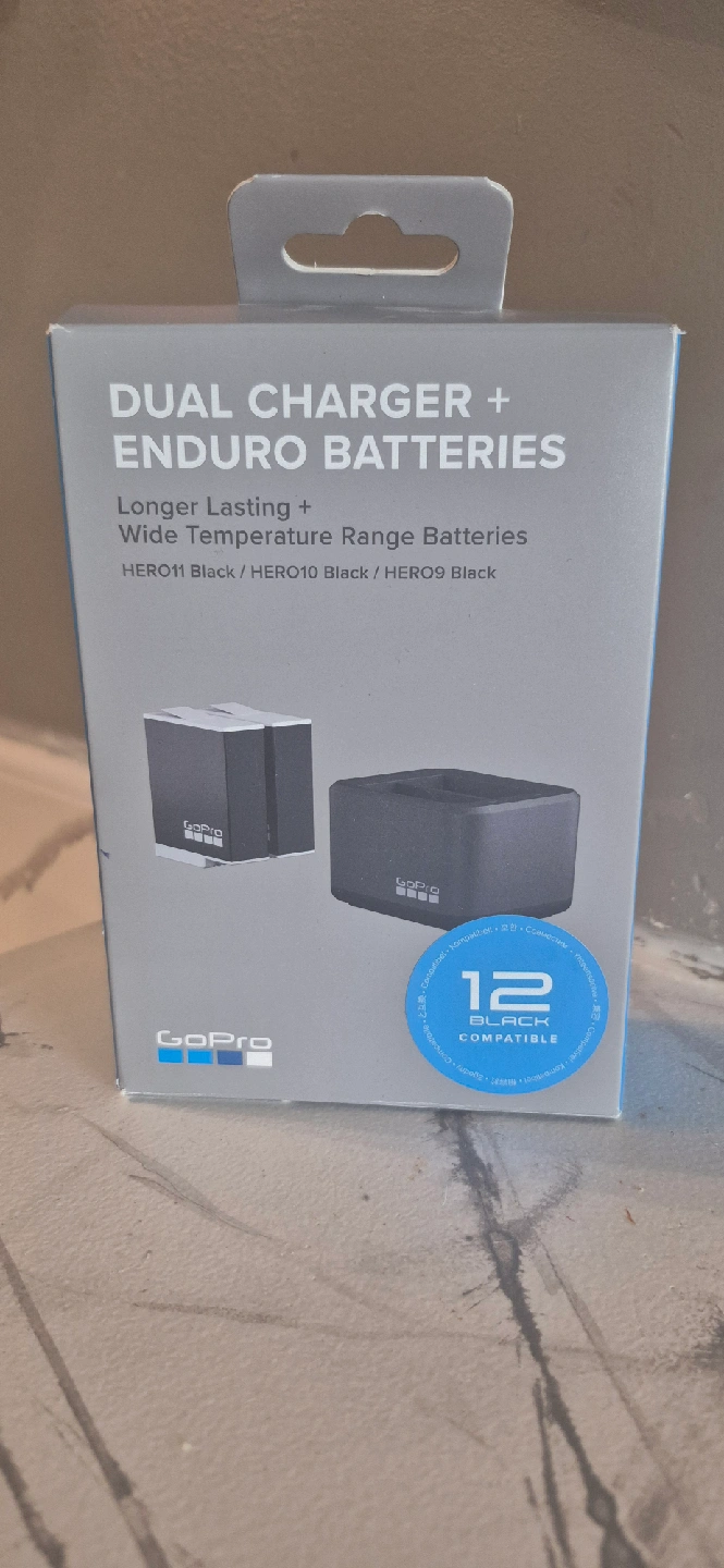 Selling a brand new GoPro Dual Charger with Enduro Batteries! This charger is compatible with HERO11 Black, HERO10 Black, HERO9 Black and HERO12 Black cameras. It also includes wide temperature range batteries for longer lasting performance. Box included!