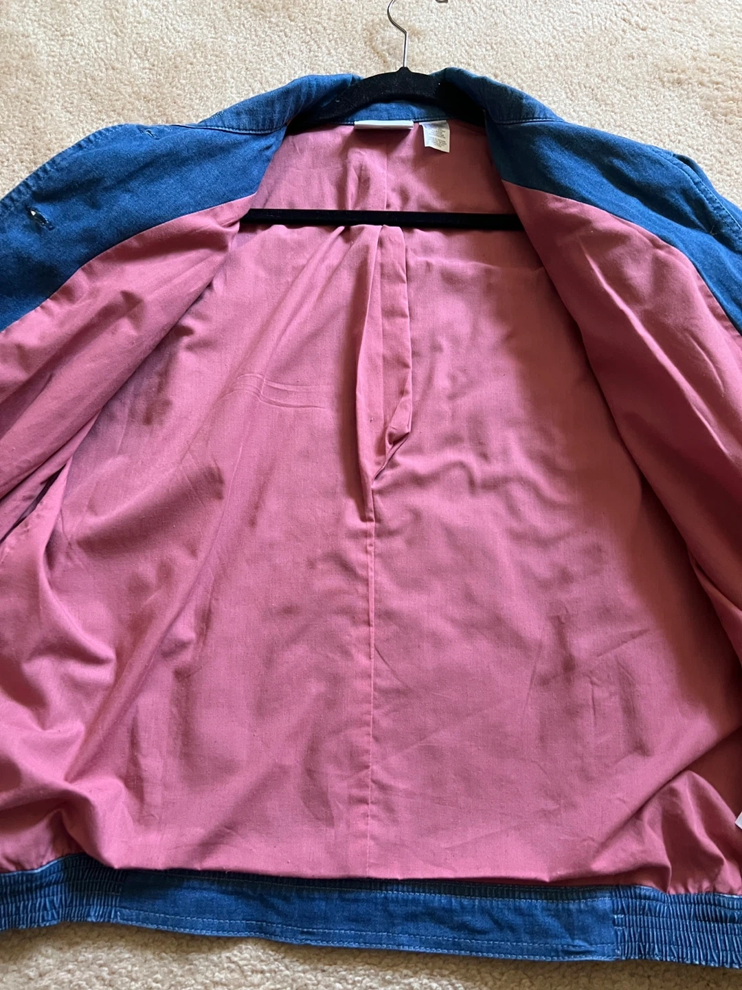 It’s lined in pink on the inside making it slightly warmer jacket.