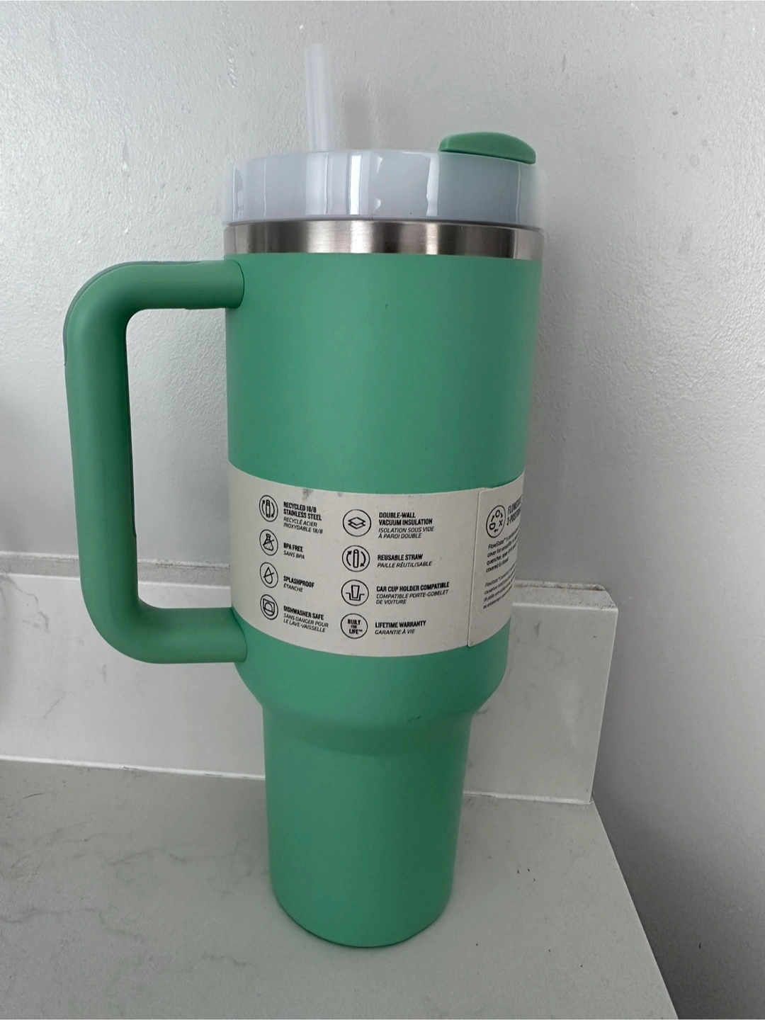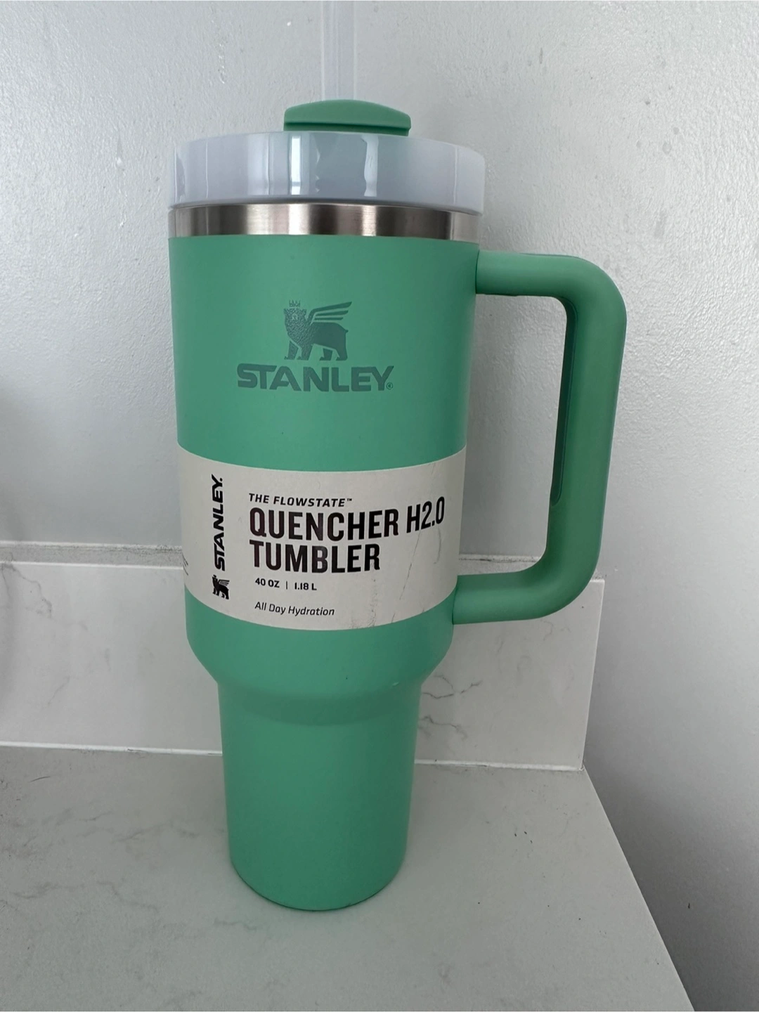 Selling a brand new Stanley Quencher H2.0 Tumbler in the 40oz size. This one is in the lovely Jade colour! Price is firm!