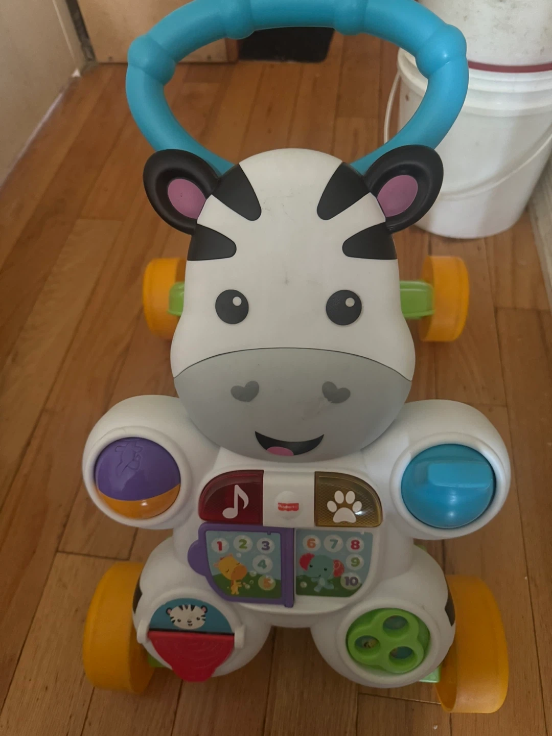 This Fisher-Price Learn with Me Zebra Walker is perfect for little ones learning to walk! It features a variety of activities to keep your baby entertained, including buttons, spinners, and a book page. The walker is in great condition and ready for a new home