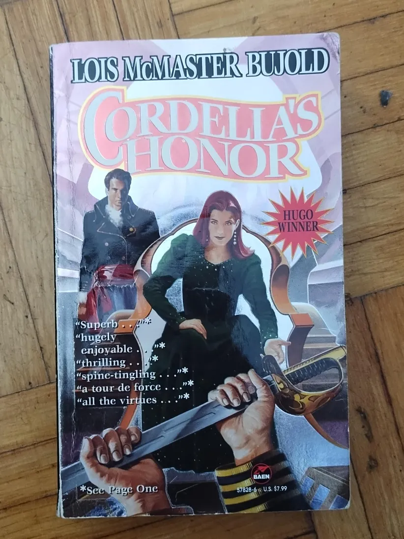 Selling a copy of "Cordelia's Honor" by Lois McMaster Bujold! This book is a Hugo Winner and promises a "spine-tingling" and "thrilling" adventure!