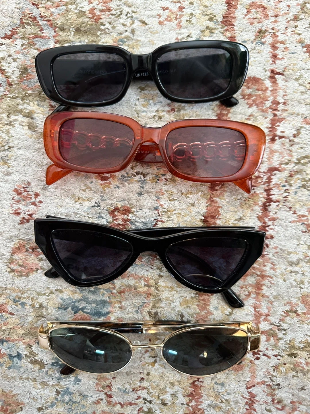 Selling a set of sunglasses! There are four pairs in total. Two are Frye & Co. and two are Steve Madden. They're in great condition and ready for a new home