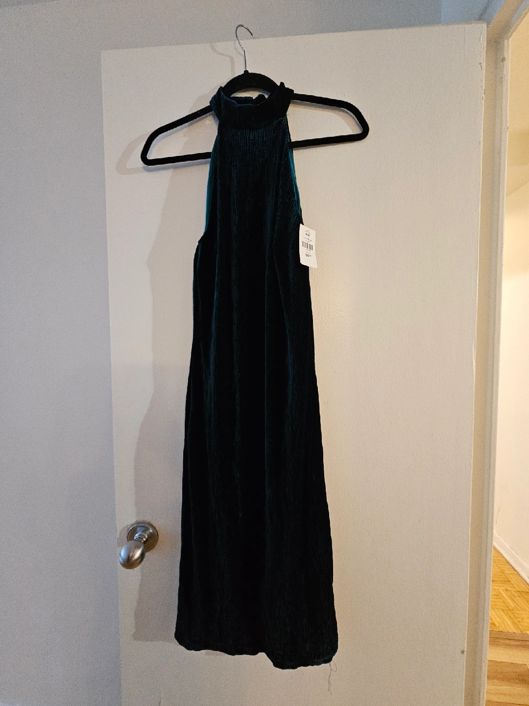 Selling a beautiful Bardot velvet dress. It's in great condition and perfect for a night out or a special occasion. The material feels luxurious and the dress has a flattering fit! It's a stylish addition to any wardrobe orig price is 50$