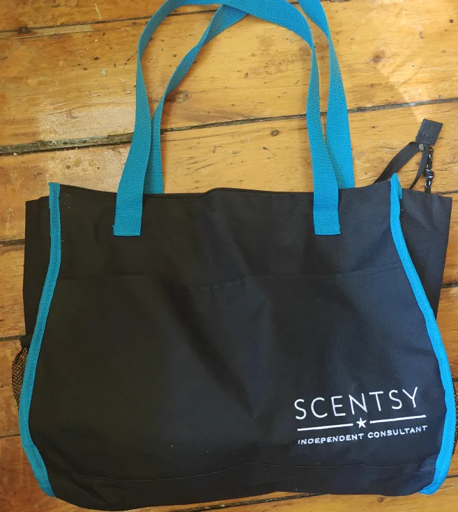 Selling a Scentsy tote bag! It's black with turquoise trim and handles. Perfect for carrying your Scentsy products or anything else you need on the go